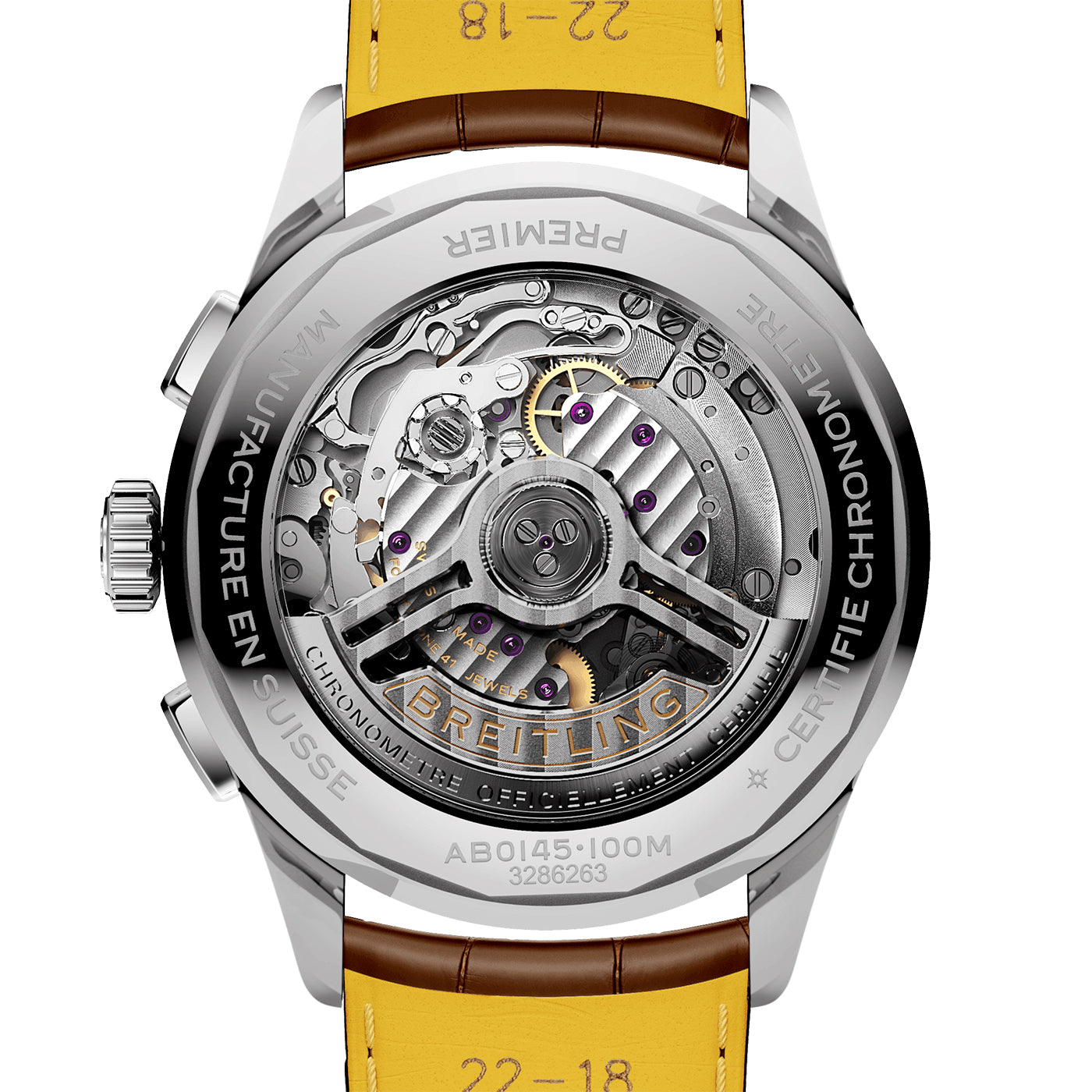 Breitling Premier B01 42mm Silver Dial Automatic Chronograph Strap Watch AB0145211G1P2. Stainless steel 42mm case and bezel all on a brown leather strap. This men's watch has a silver dial with rose golden hands and hour markers, date display at the 6 o'clock position. Water resistant up to 100m and sapphire crystal glass. Power reserve up to 70 hours. Automatic chronograph movement.