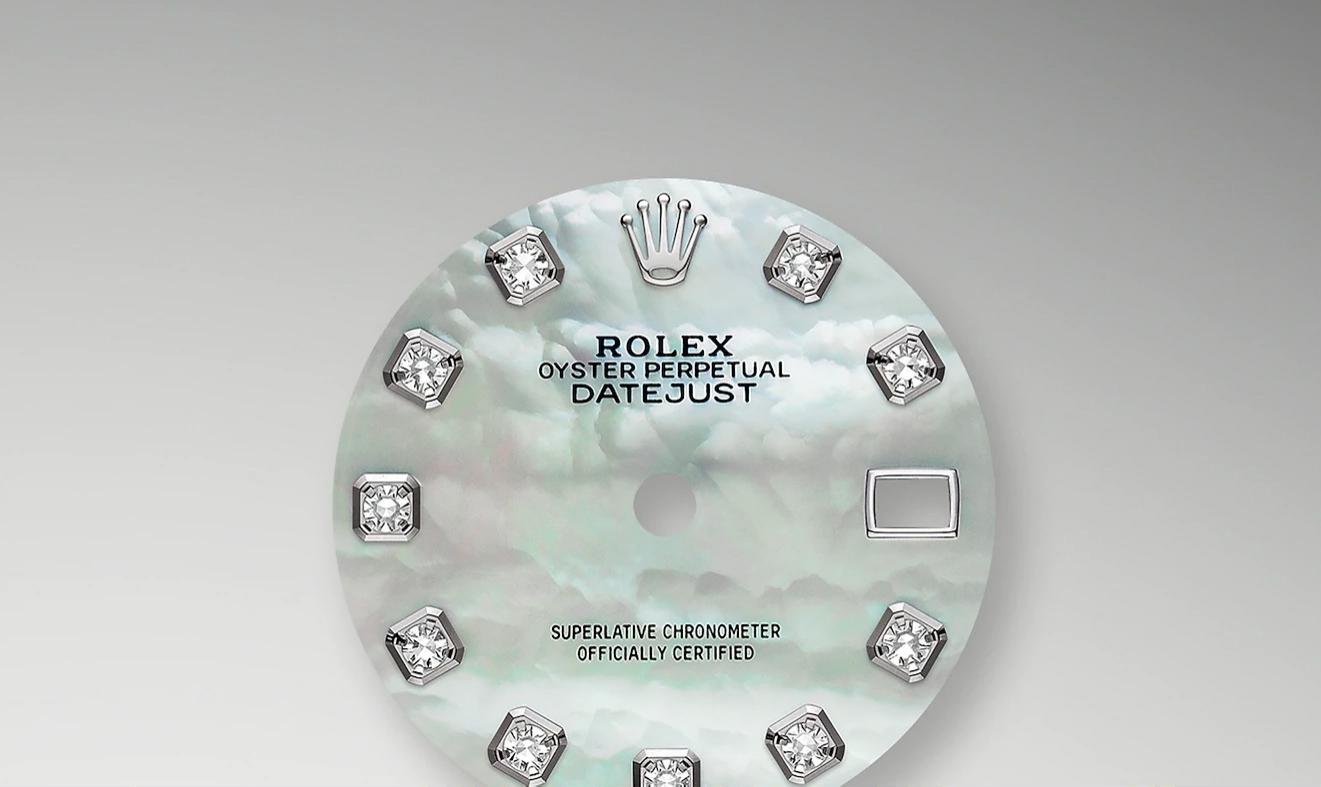 The light reflections on the case sides and lugs highlight the elegant profile of the 28 mm Oyster case, which is fitted with a fluted bezel. Rolex's classic feminine watch, the Lady-Datejust is in the lineage of the Datejust, the emblematic model that has been a byword for style and accurate timekeeping.