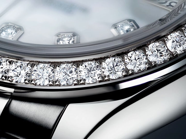 Non scratch real Sapphire crystal is use on all our Swiss Replica watches. Been one of the hardest substances on earth it’s virtually impossible to scratch unlike mineral glass found other replicas. Real Moissanite diamond gem is hand-faceted by our gem cutters to offer the same brilliance and spark found on the genuine watches. We guarantee that your Swisstime Swiss replica watch diamonds brilliance will last forever.