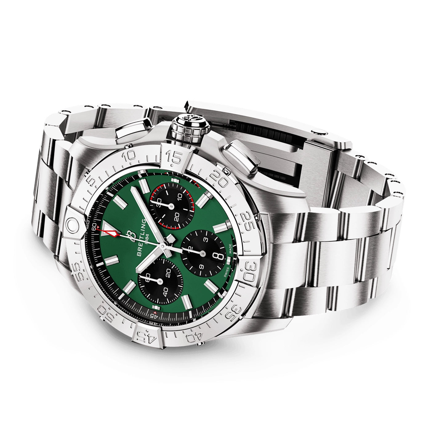 Breitling Avenger Chronograph 42mm Green Dial Automatic Bracelet WatchAB0146101L1A1. Stainless steel 42mm case and bezel all on a stainless steel bracelet. This men's watch has a green dial with luminous applied hands and hour indexes, date display at the 6 o'clock position. Water resistant up to 300m and sapphire crystal glass. Power reserve up to 70 hours. Automatic chronograph movement.