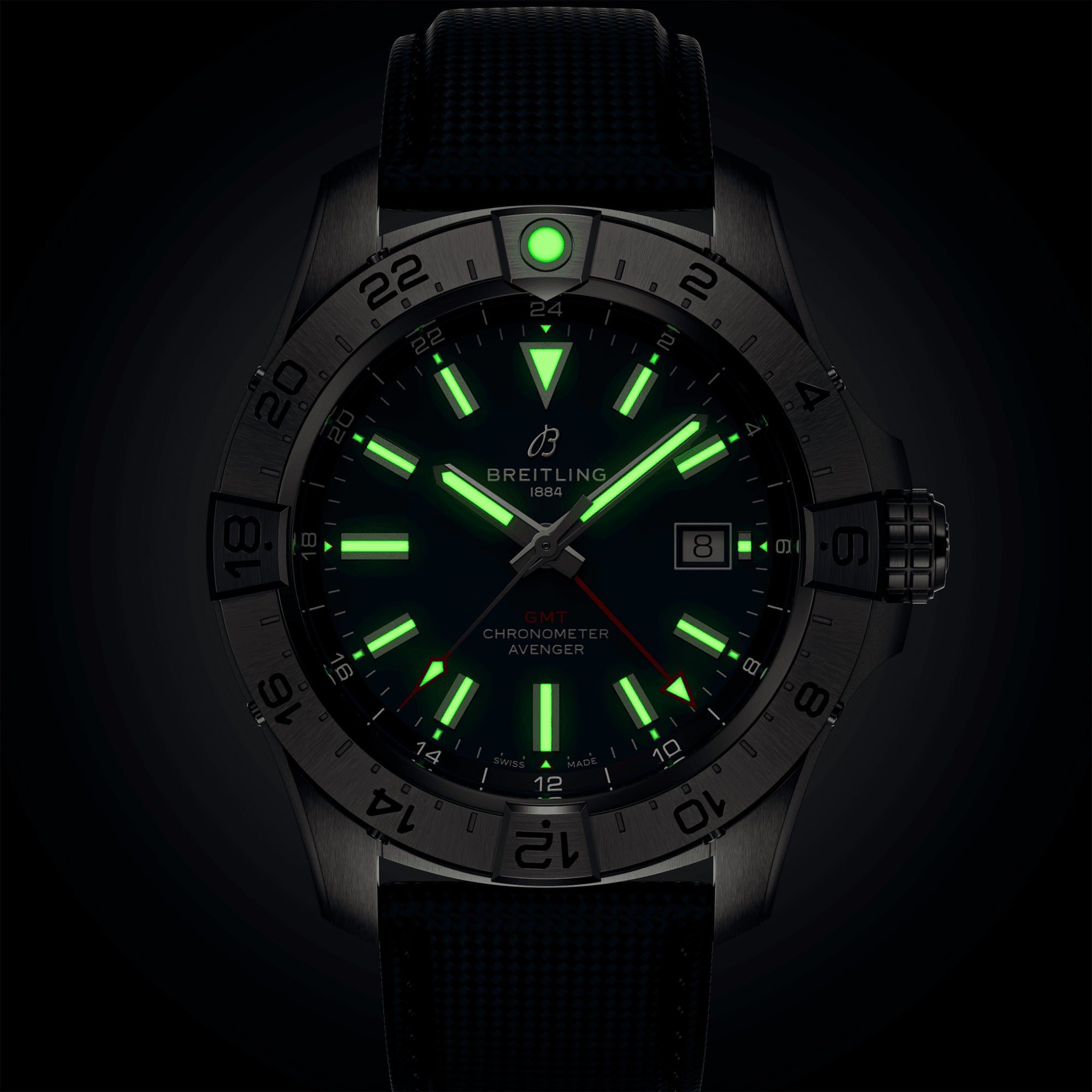 BreitlingAvenger 44mmBlue Dial Automatic Strap Watch A32320101C1X1. Stainless steel 42mm case and bezel all on aBlue calfskin leather strap. This men's watch has a black dial with luminous applied hands and hour indexes, date display at the 3 o'clock position. Water resistant up to 300m and sapphire crystal glass. Power reserve up to 70 hours. Automatic movement.