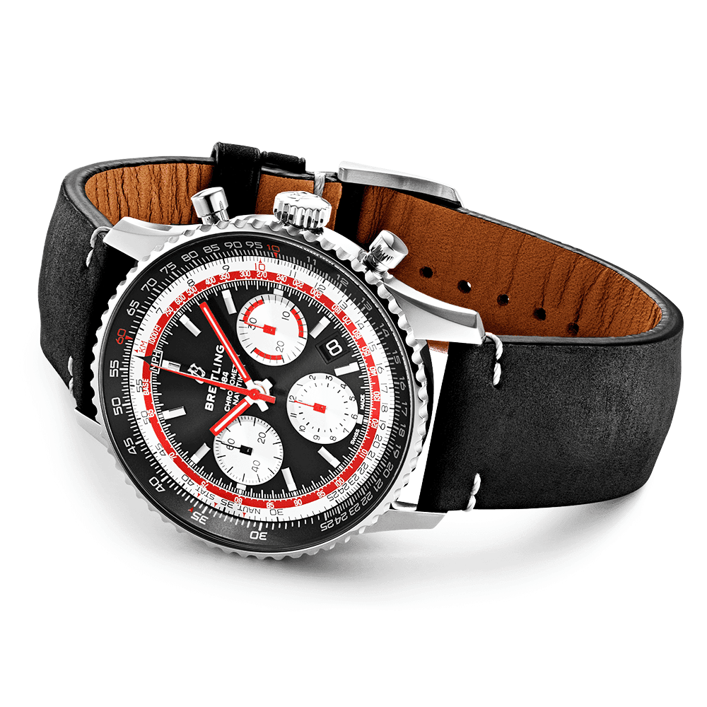 Breitling Navitimer 41mm Blue Dial Men's Automatic Bracelet Watch AB01211B1B1X1. Stainless steel 41mm case and beaded bezel all on a stainless steel bracelet. This men's watch has a blue sunray dial with polished hands and hour markers, date display at the 6 o'clock position. Sapphire crystal glass and water resistant up to 30m. Power reserve up to 38 hours. Automatic movement.