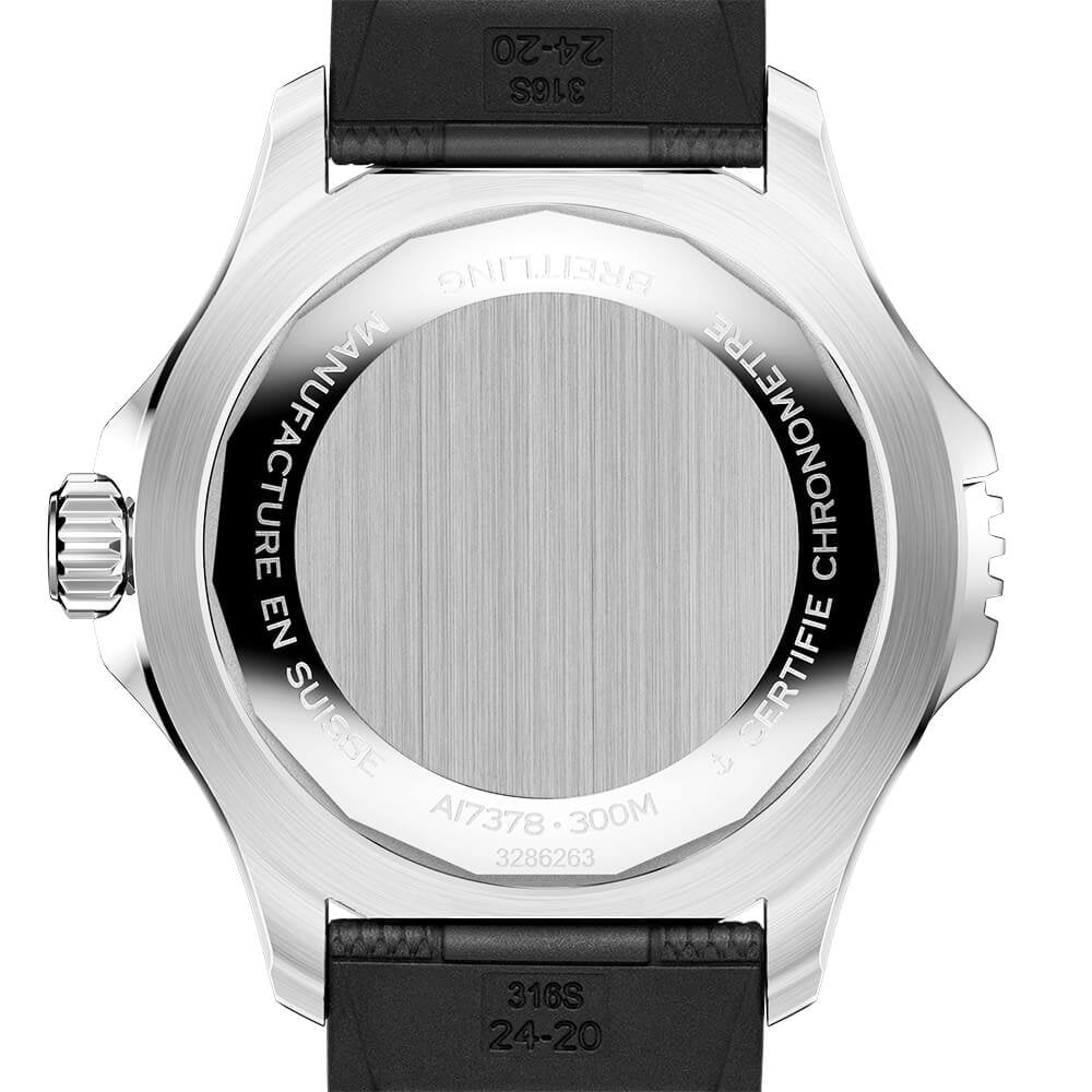 BreitlingSuperocean 46mm Black Dial Men's Automatic Strap WatchA17378211B1S1. Stainless steel 46mm case and black ceramic inlayed bezel all on a strap & buckle of your choosing. This men's watch has a black sector dial with large silver outer ring, luminous applied hands and hour markers and red tipped seconds hand. Water resistant up to 300m and sapphire crystal glass. Automatic movement.