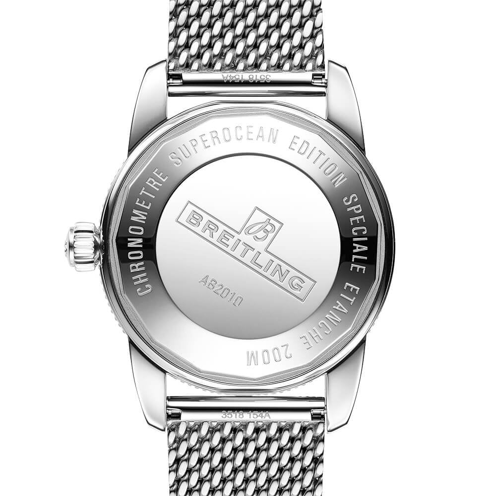 A date window at 6 o’clock is dressed against a striking white background to add balance to the “Breitling Chronometer” lettering underneath the 12 o’clock location. Lastly, a beautifully polished cambered sapphire crystal glass, glare-proofed on both sides, allows the wearer the opportunity to read information off the dial quickly and precisely.