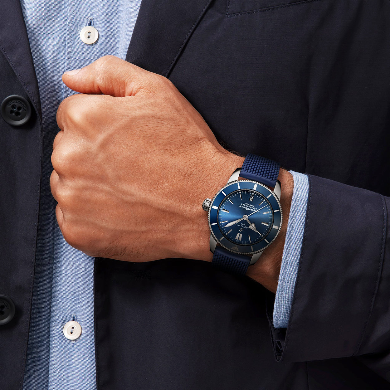 • Superocean Heritage II 44mm Blue Dial Automatic Rubber Strap Watch