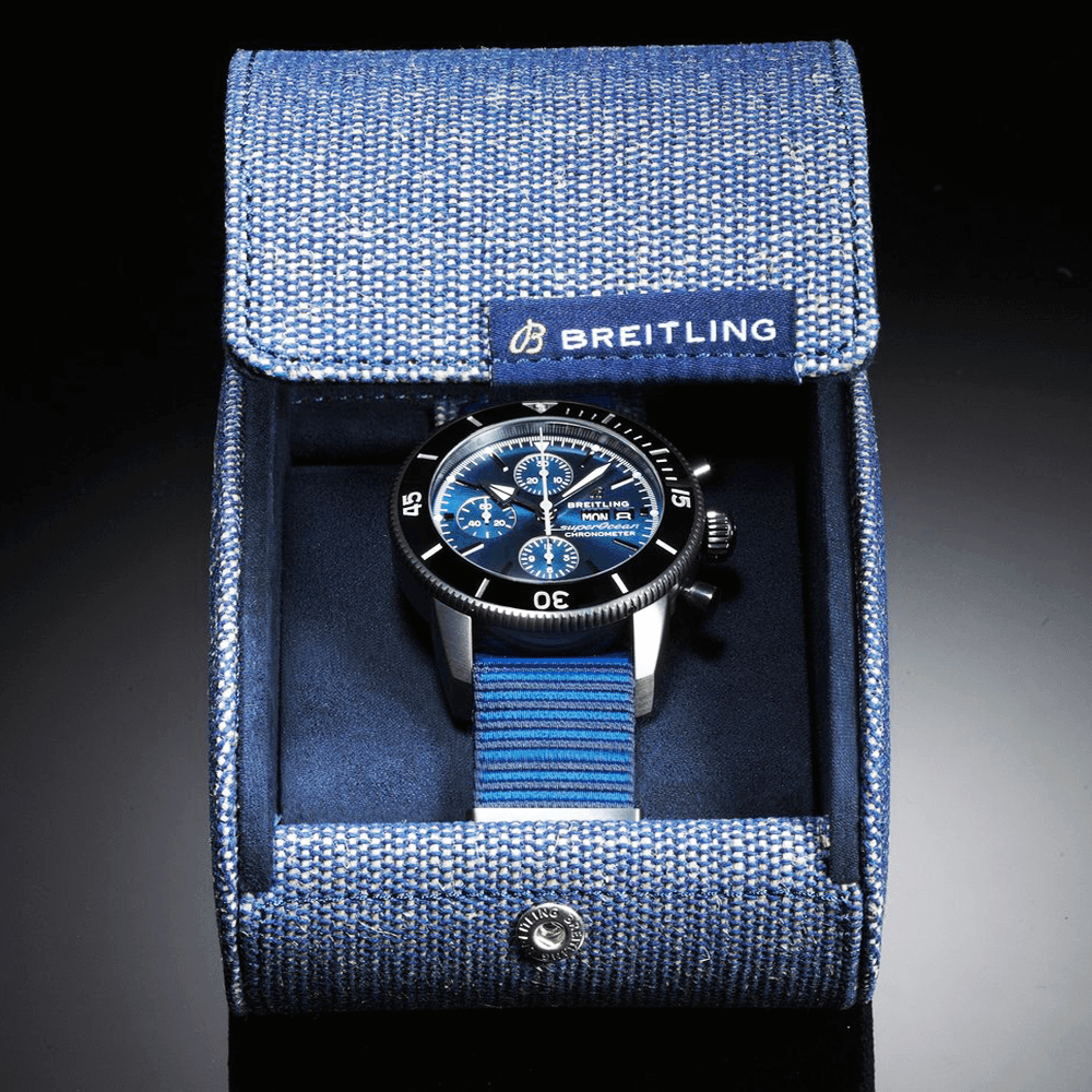 The Superocean Héritage II Chronograph 44 Outerknown celebrates Breitling’s partnership with sustainable apparel manufacturer Outerknown, co-founded by surfing legend Kelly Slater.
