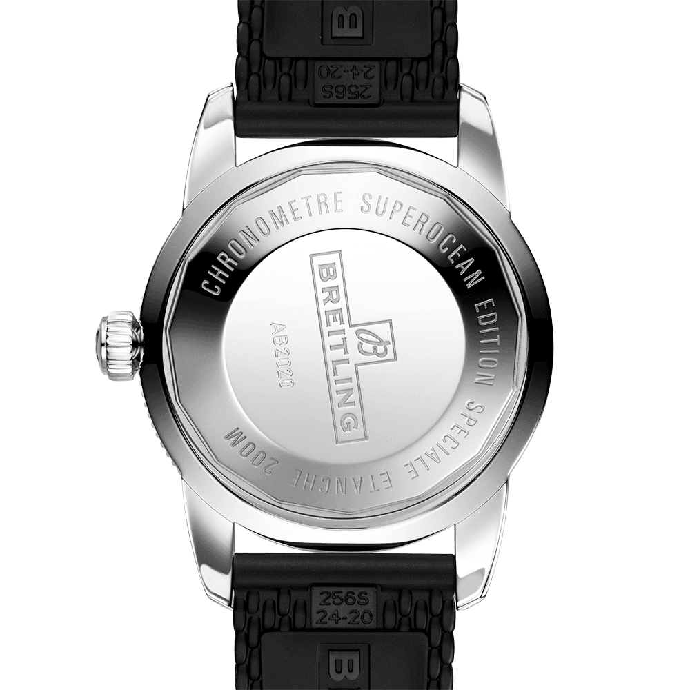BreitlingSuperocean Heritage II 46mm Green Dial Men's Automatic Strap WatchAB2020121L1S1. Stainless steel 46mm case and black ceramic bezel all on a black rubber strap. This men's watch has a sunray green dial with polished hands and hour markers, date display at the 6 o'clock position. Water resistant up to 200m and sapphire crystal glass. Power reserve up to 70 hours. Automatic movement.
