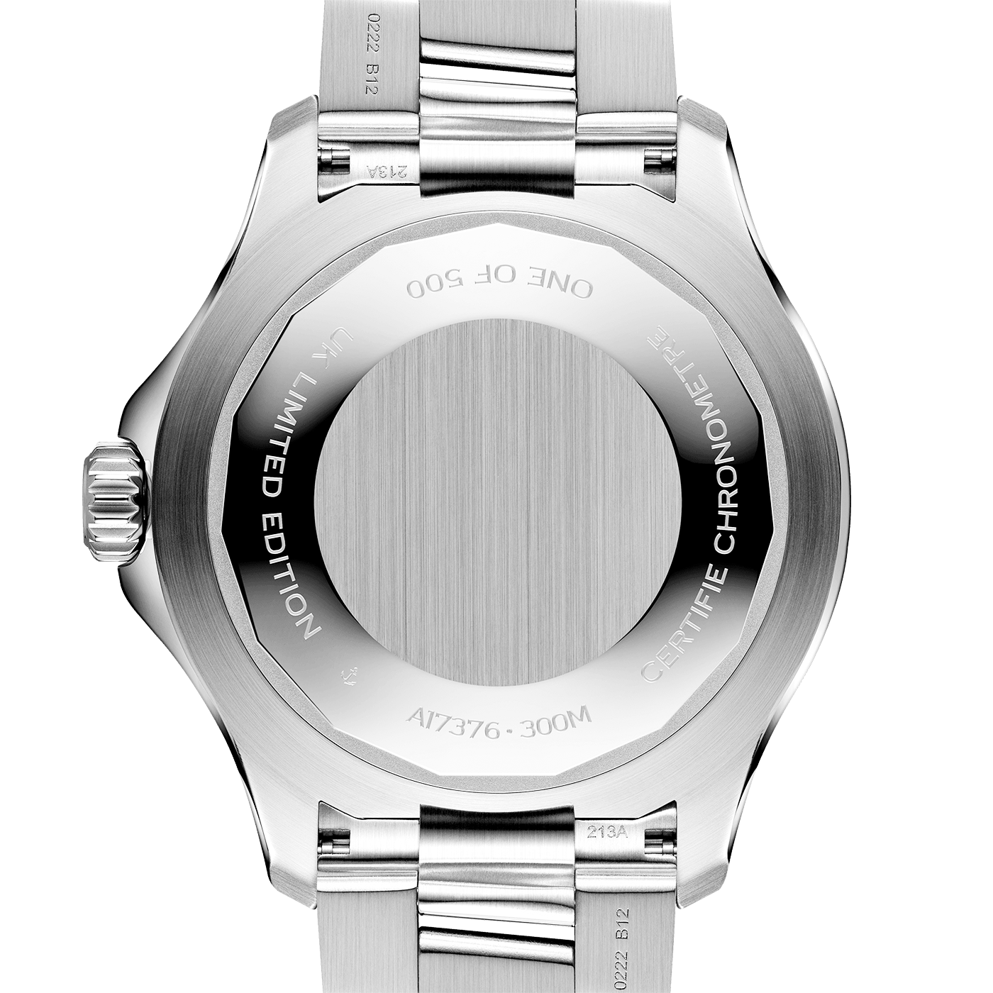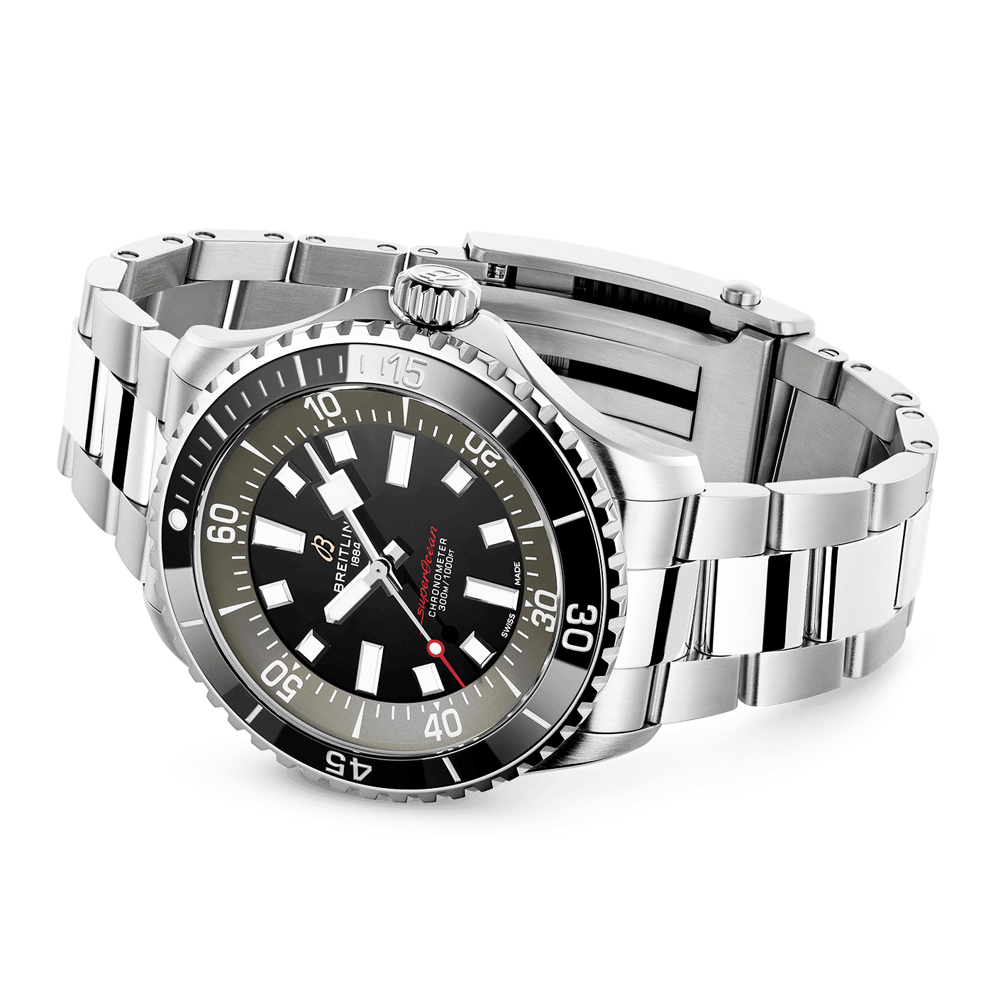 Breitling Superocean 44mm UK Limited Edition Bracelet Watch A173765A1B1A1. Stainless steel 44mm case and black ceramic inlayed bezel all on a stainless steel bracelet. This men's watch has a black, luminous applied hands and hour markers and red tipped seconds hand. Water resistant up to 300m and sapphire crystal glass. Automatic movement.