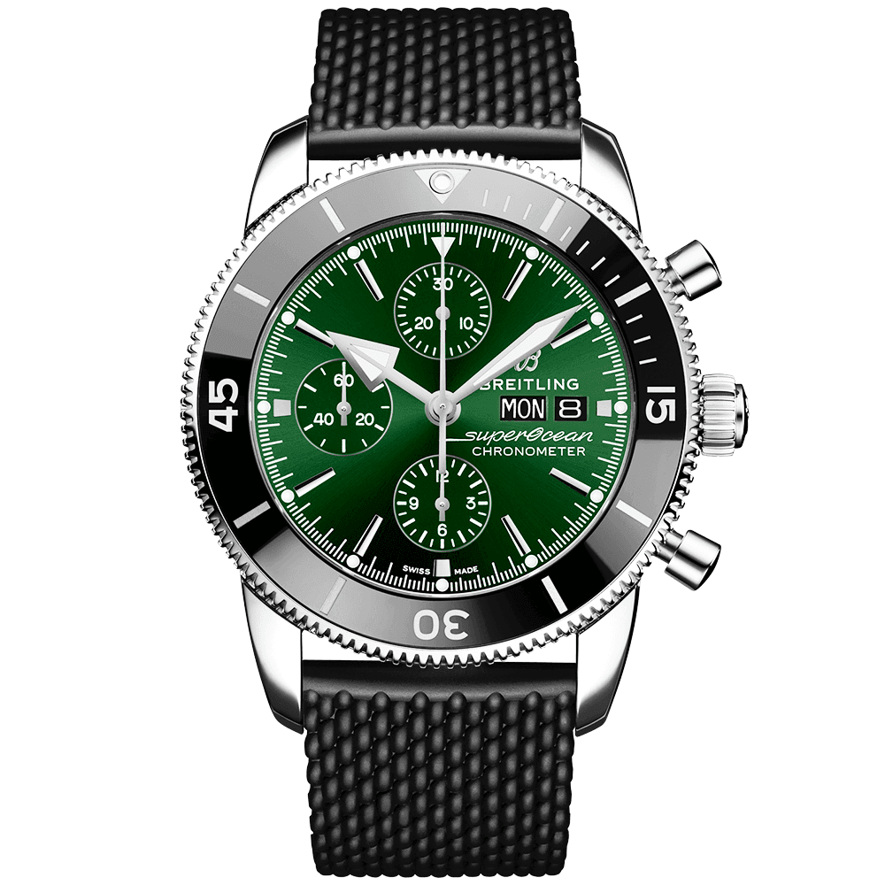 Superocean Heritage II 44mm Green Dial Day/Date Strap Watch