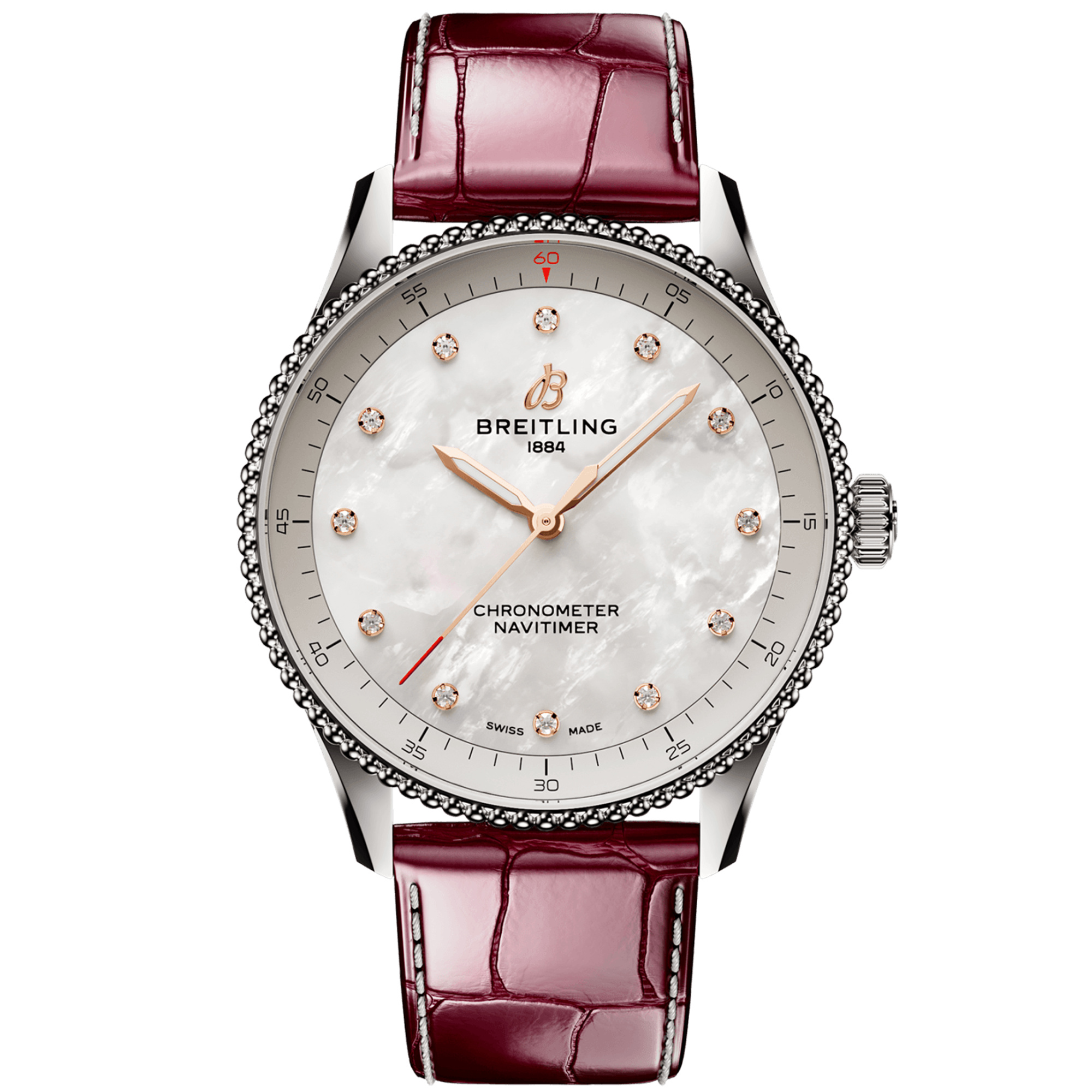 Navitimer 32mm White Mother of Pearl Diamond Dial Strap Watch