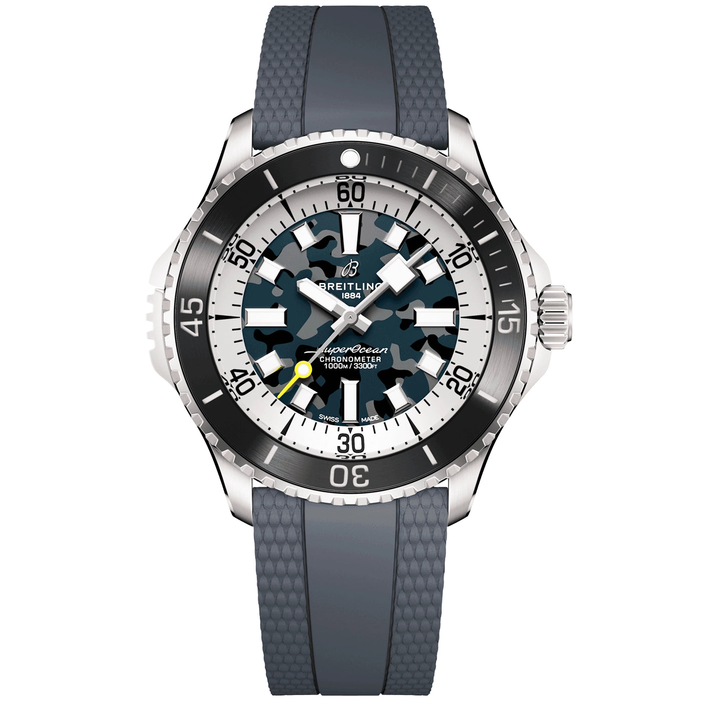 Superocean Super Diver 46mm Grey Camo Dial Rubber Strap Watch