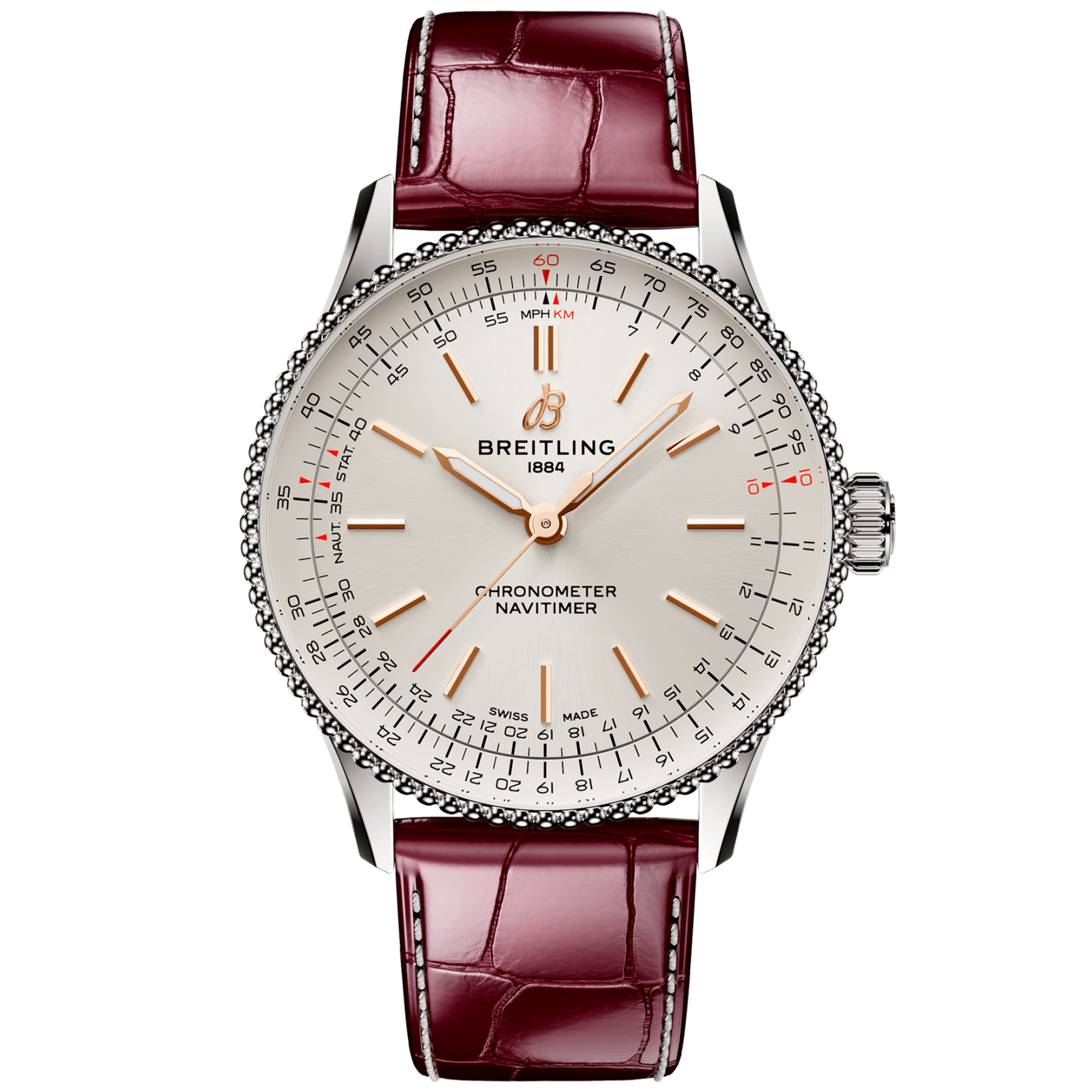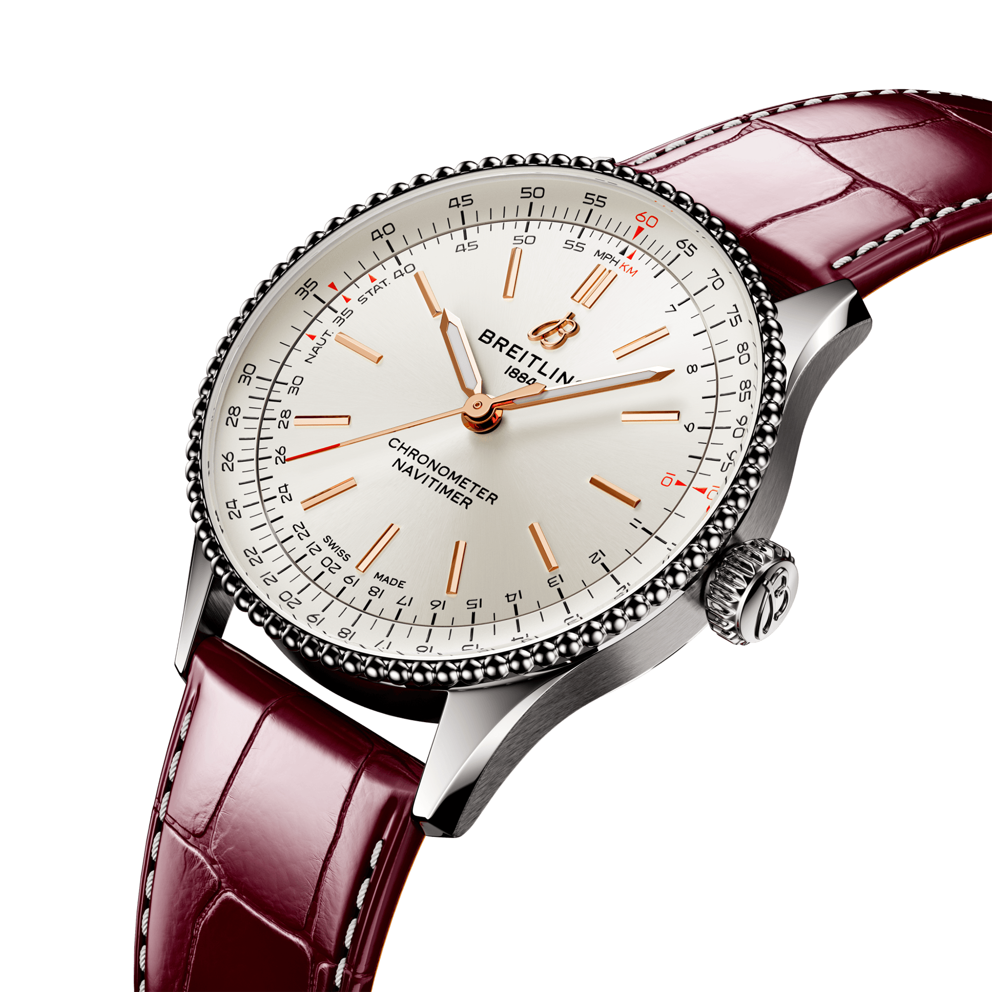 Navitimer 36mm Silver/Rose Dial Ladies Strap Watch