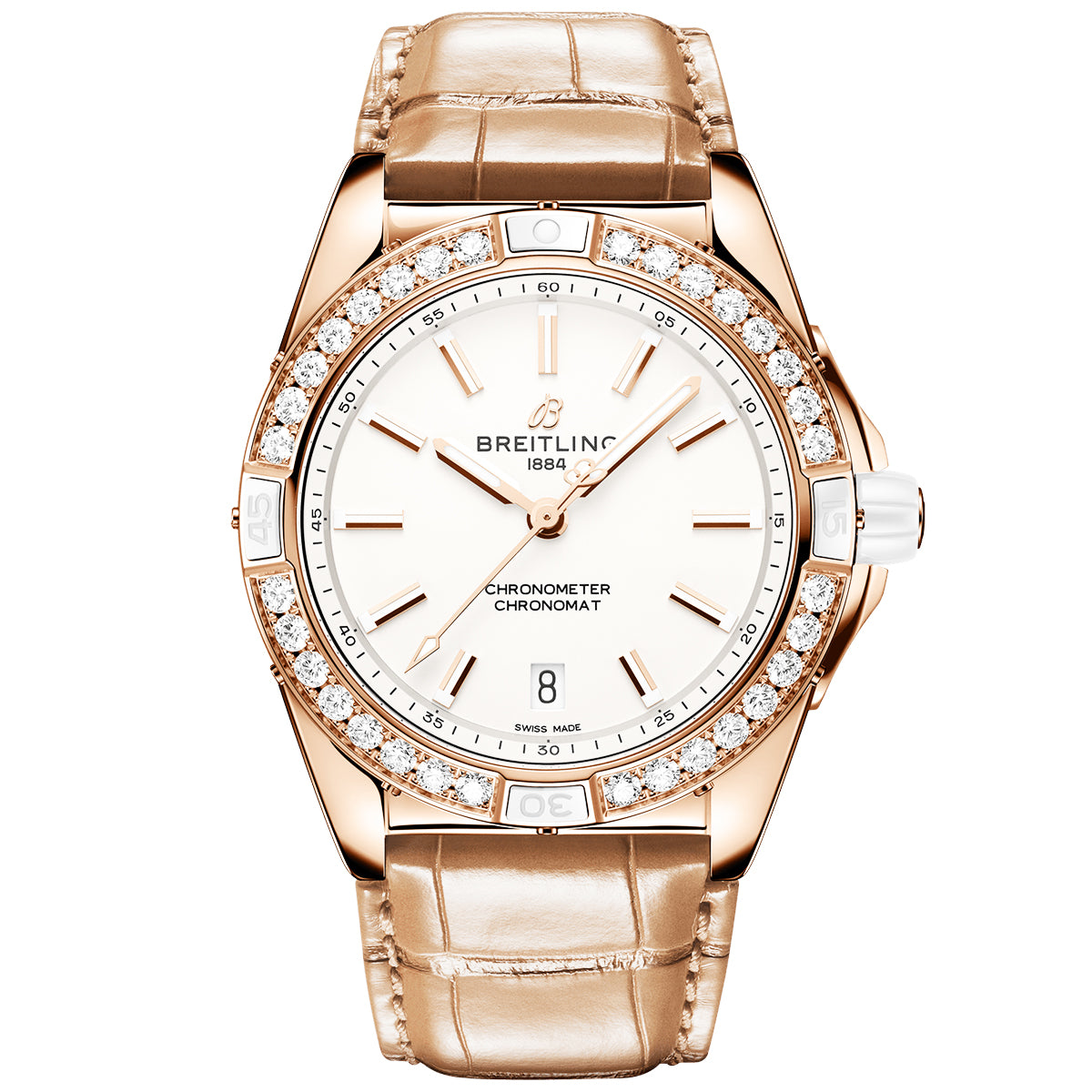 Super Chronomat 18ct Rose Gold 38mm Silver Dial Leather Strap Watch