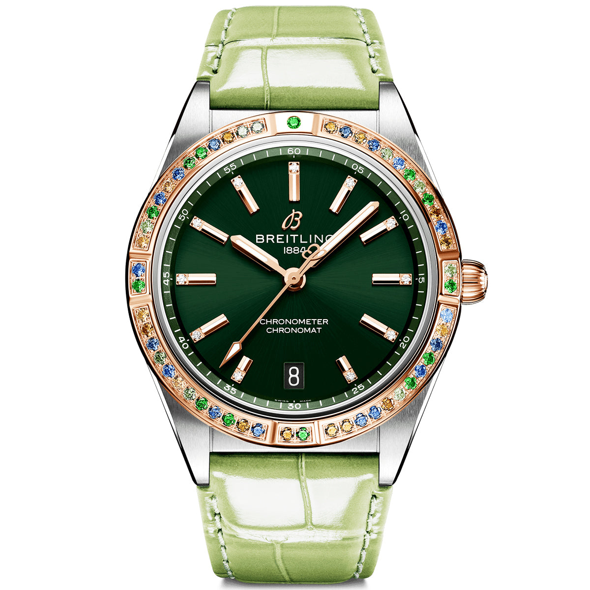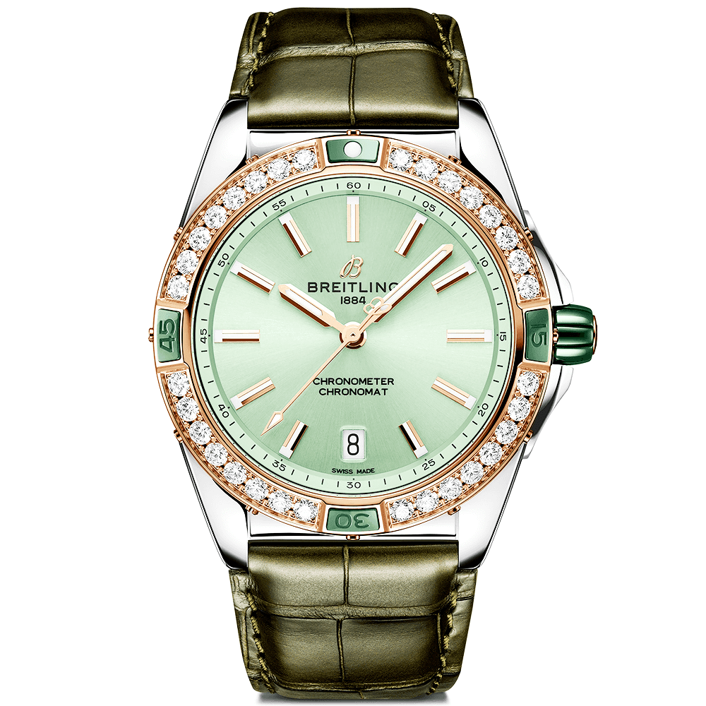 Super Chronomat 38mm Mint Green Dial Two-Tone Leather Strap Watch