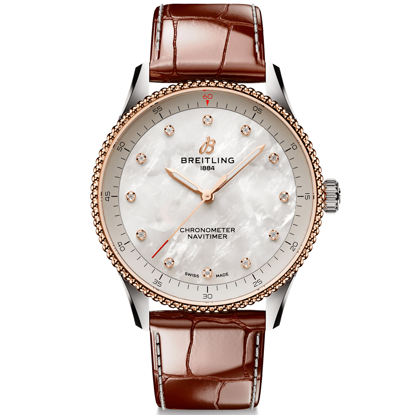 Navitimer 32mm Two-Tone Diamond Dial Ladies Strap Watch
