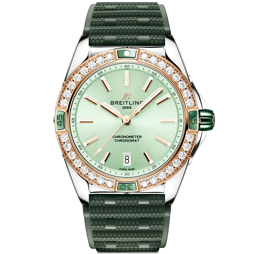 Super Chronomat 38mm Mint Green Dial Two-Tone Rubber Strap Watch