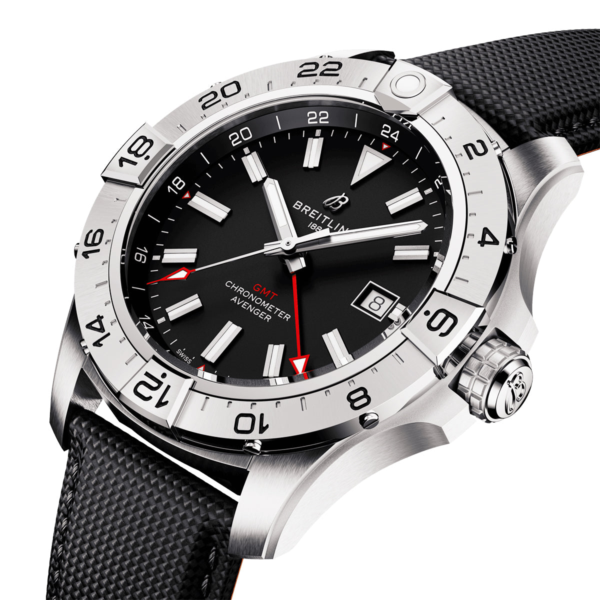 Avenger GMT 44mm Black Dial Automatic Strap Watch