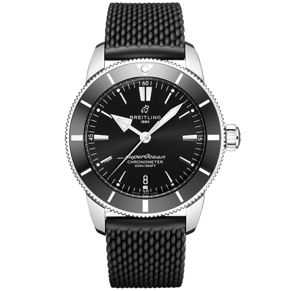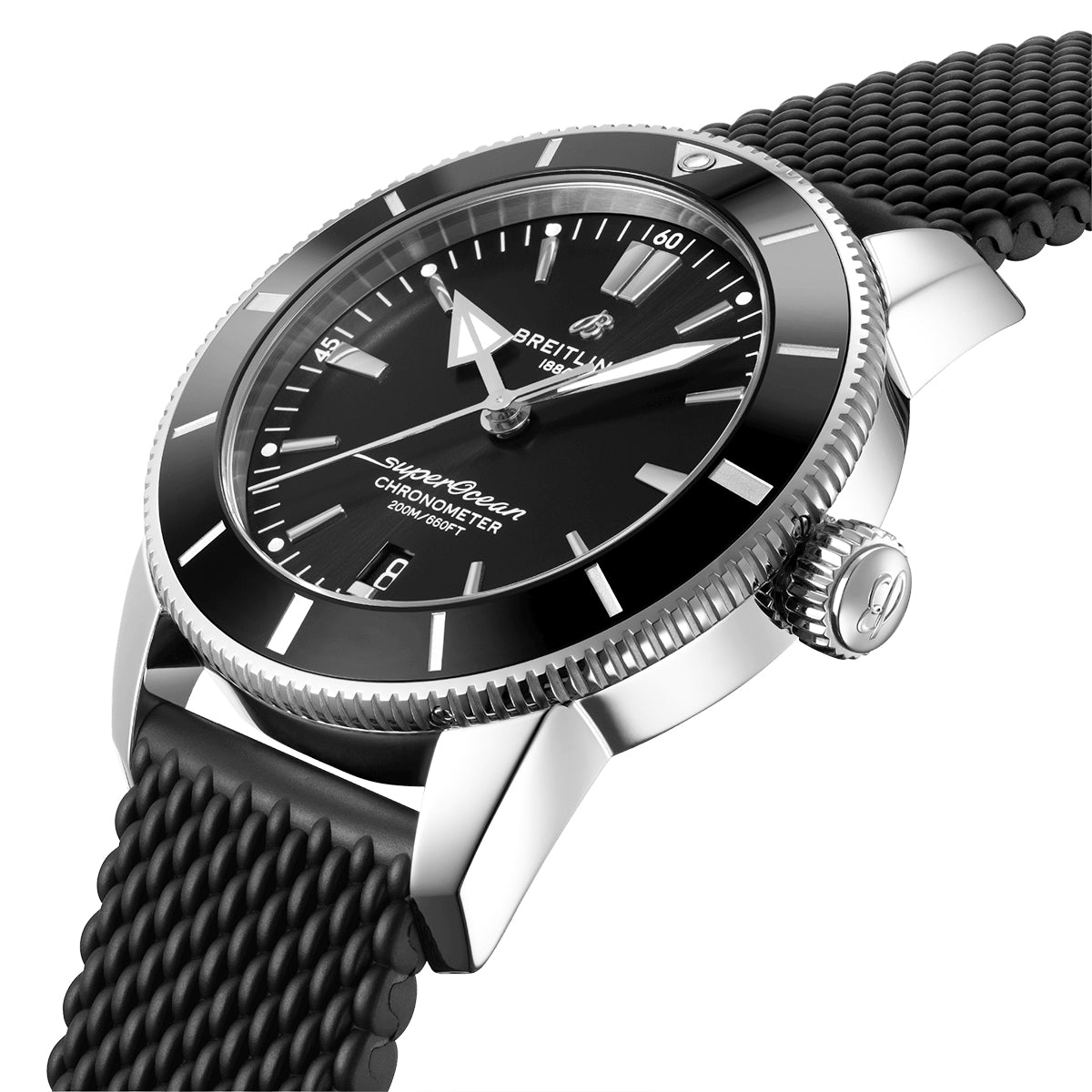Superocean Heritage II 44mm Black Dial Automatic Rubber Strap Watch