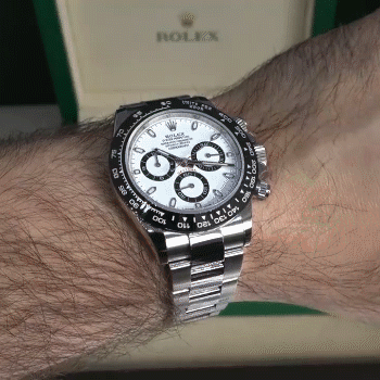 Men’s Rolex Daytona 40mm Stainless Steel, White Dial on Oyster Bracelet, Reference # 116500WSO with Fixed Stainless Steel Tachymeter Engraved bezel. You can get an unworn like new timepiece from us as well as pre-owned Rolex Ref# 116500WSO.