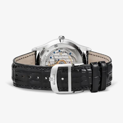 Conceived as the quintessential dress watch for the modern aesthete, the dial epitomises this spirit of sophistication. Refined sub-dials make the day, date and month displays legible, while elongated hour markers, Dauphine hands, intricate starry sky on the moon phase emphasize this timelessly elegant design.