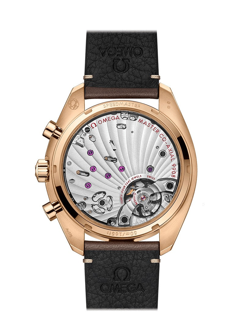 Unworn Omega Speedmaster CHRONOSCOPE CO”‘AXIAL MASTER CHRONOMETER CHRONOGRAPH 329.92.43.51.10.001. 43 mm, Browndial, Bronze Gold case, Brown ceramic bezel, 9908 calibre, Automatic Movement, 60 hour power reserve, Leather strap Pin buckle clasp. Water resistant to 50 m.