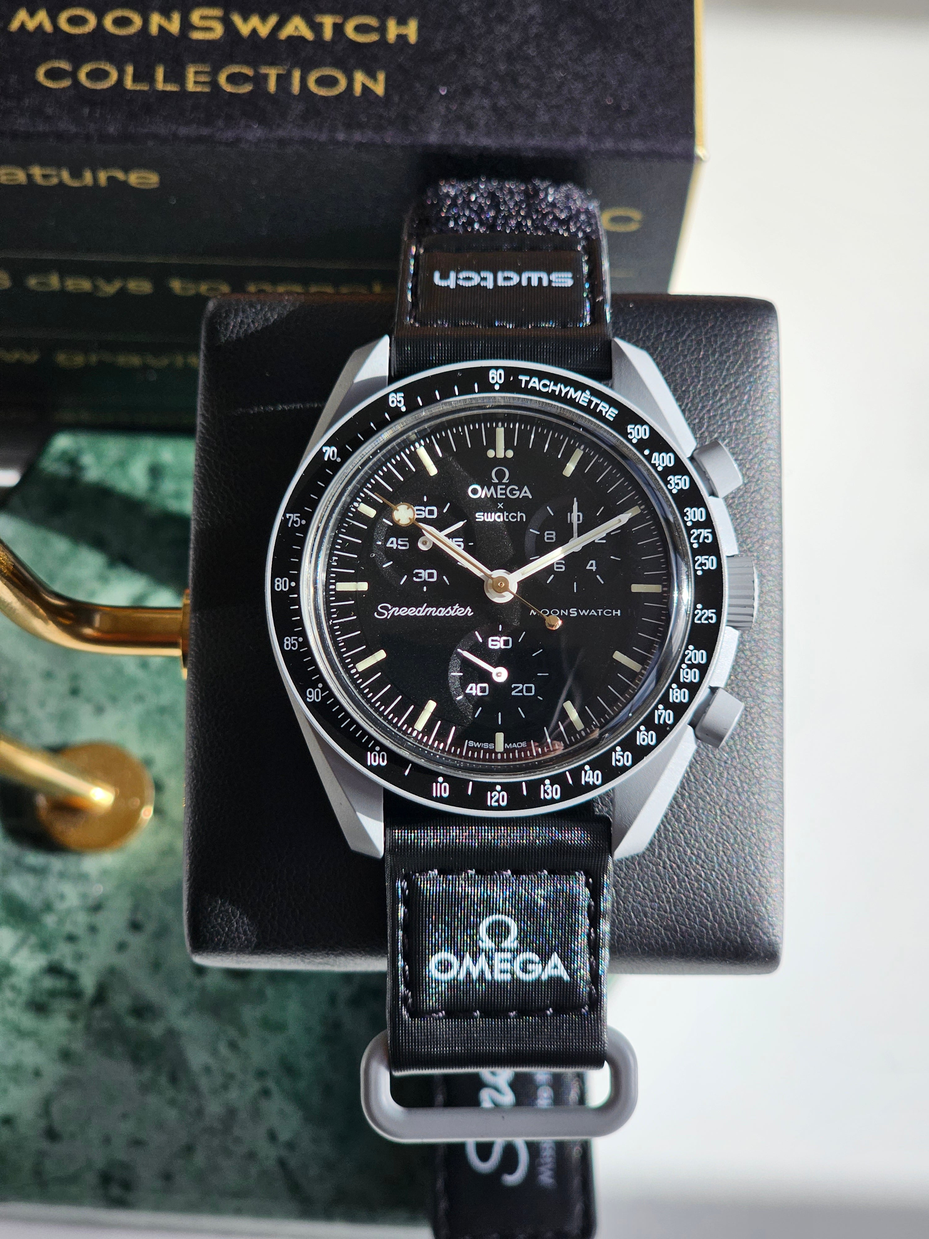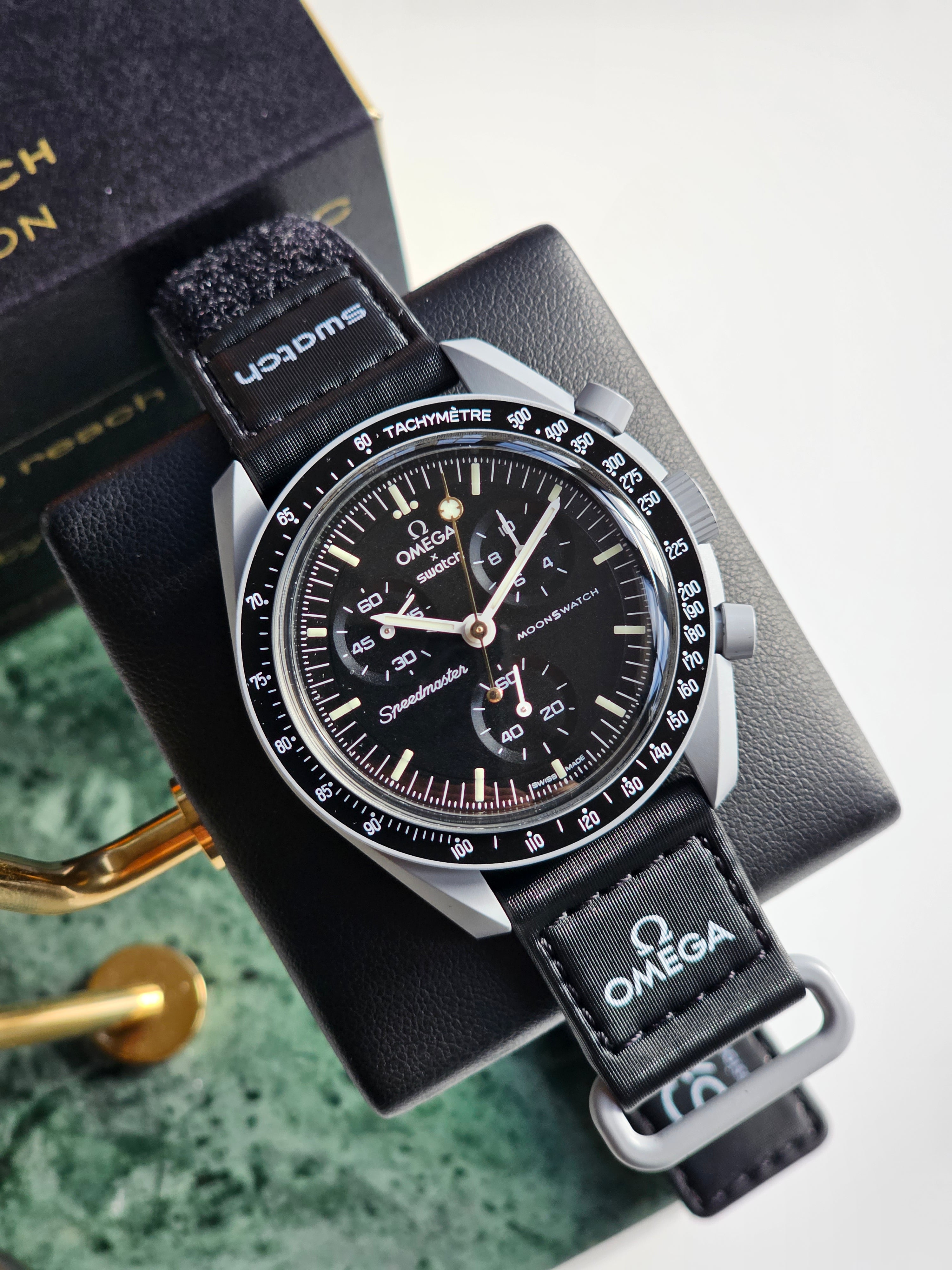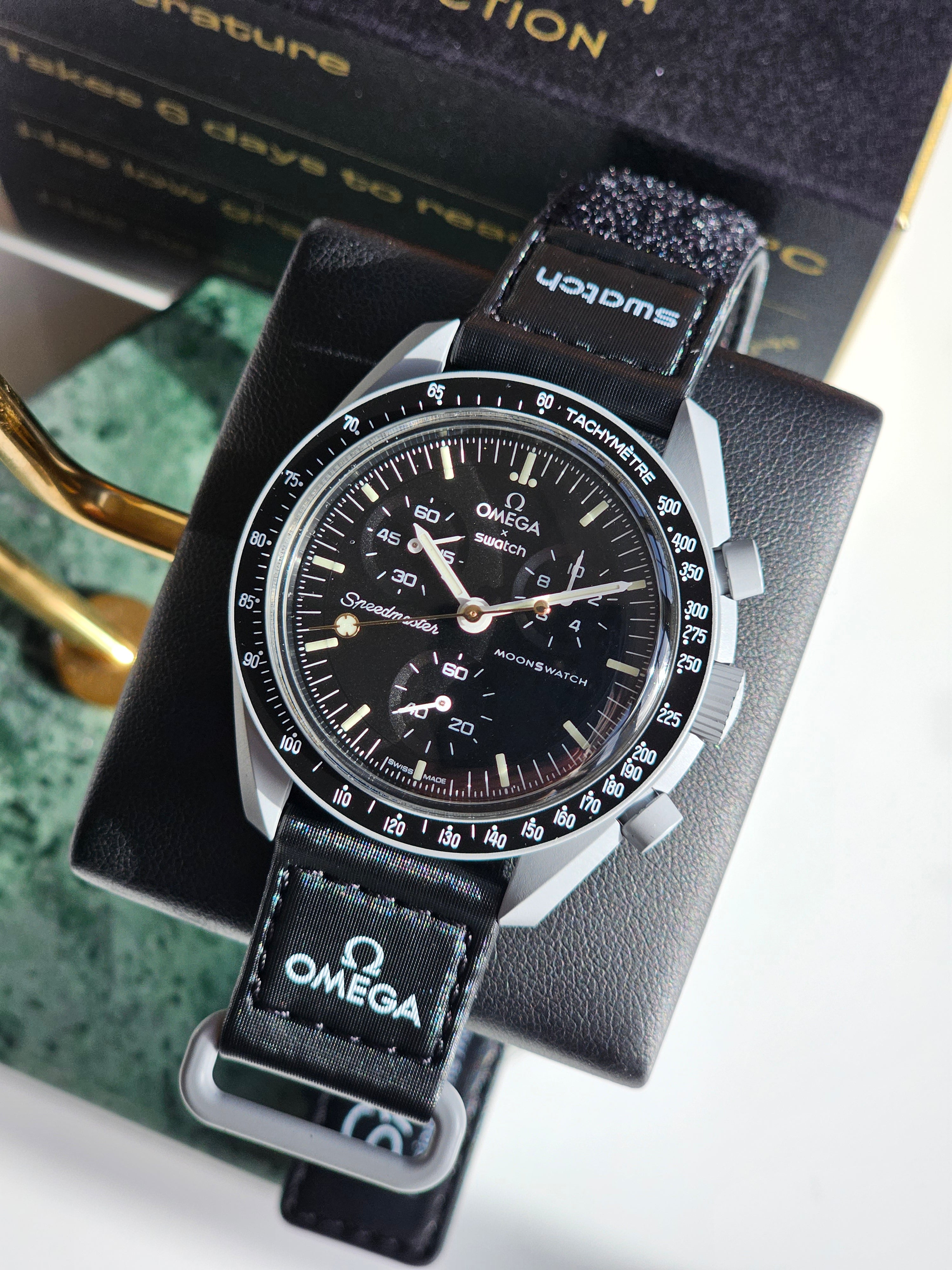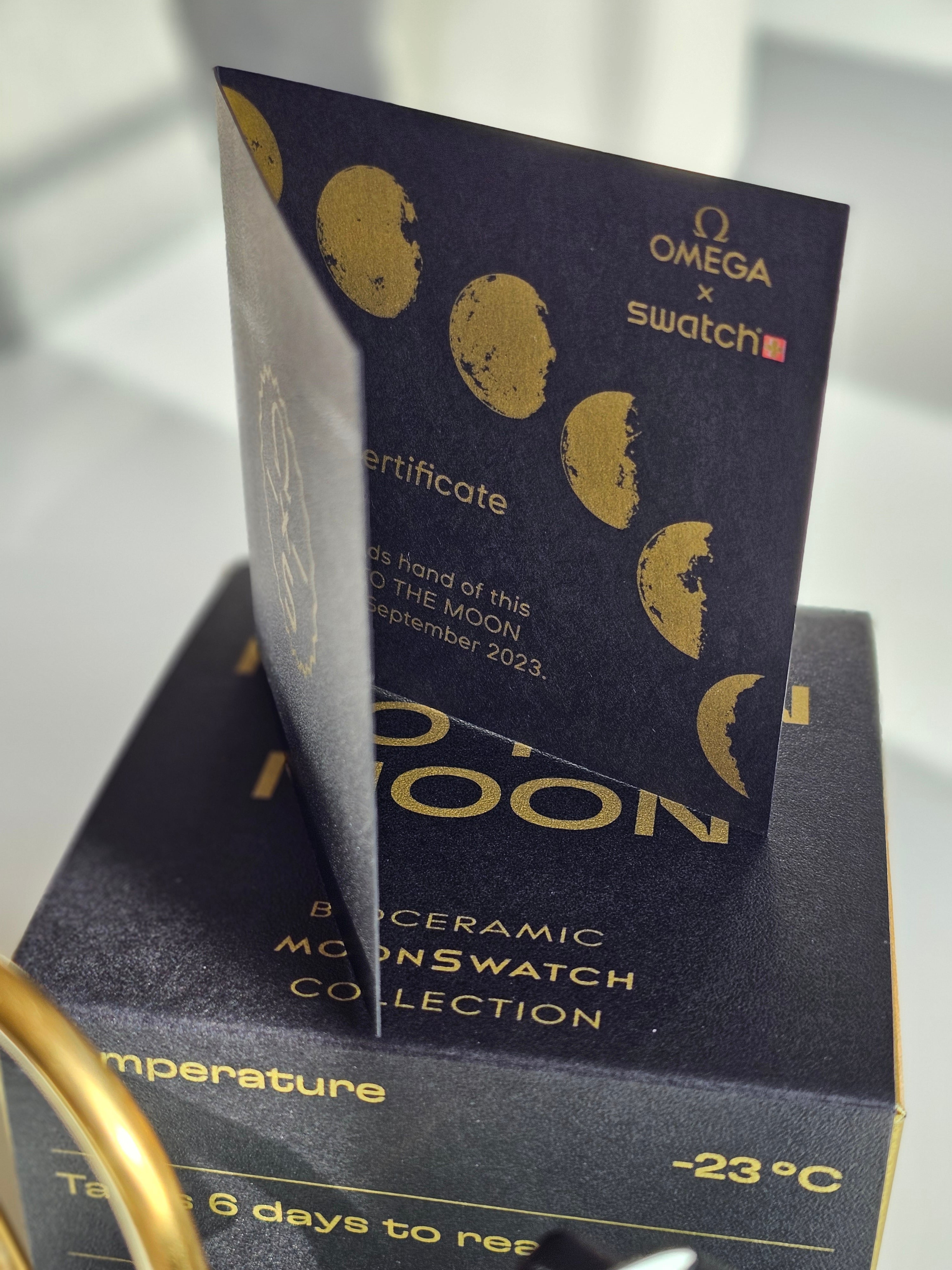 This "Mission to the Moon" is a treasure made available exclusively at swatch Mission to Moonshine Gold events. Accompanying each watch is a certificate of authenticity, ensuring the exclusivity and unique production story of this stunning timepiece.