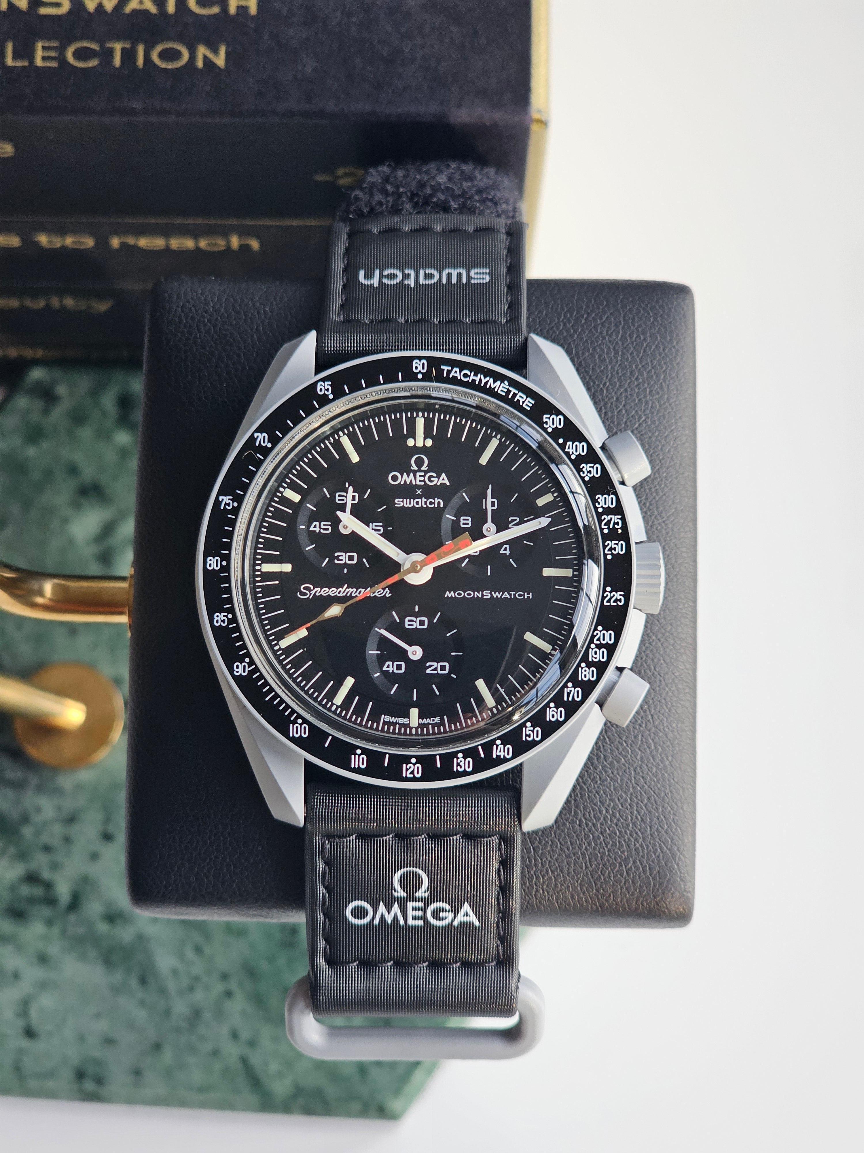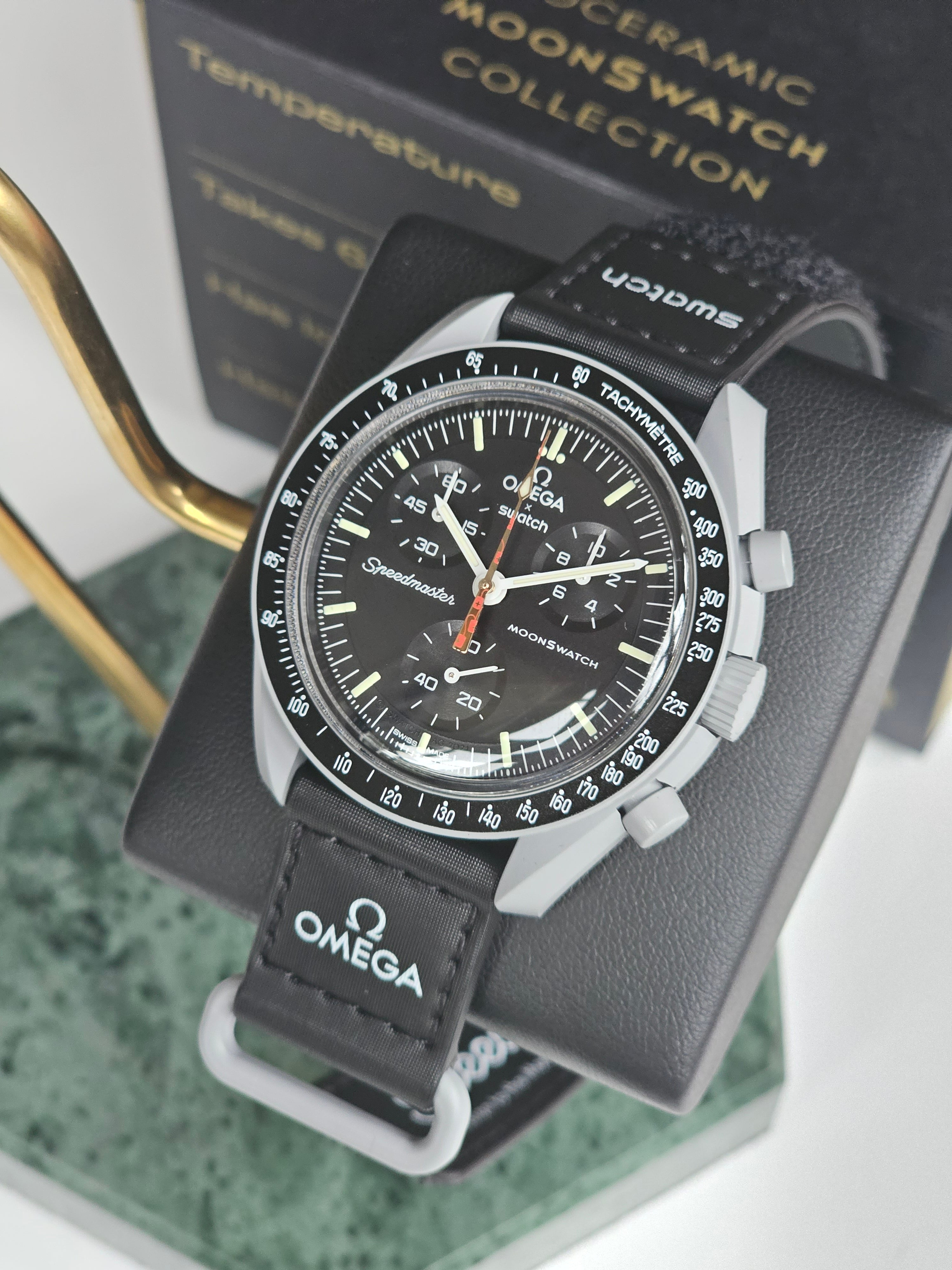 Celebrate Swiss National Day with our extraordinary "Mission to the Moon" timepiece, a tribute to the rich Swiss-made heritage of both OMEGA and Swatch. This special edition watch is a masterpiece that embodies Swiss craftsmanship and innovation.