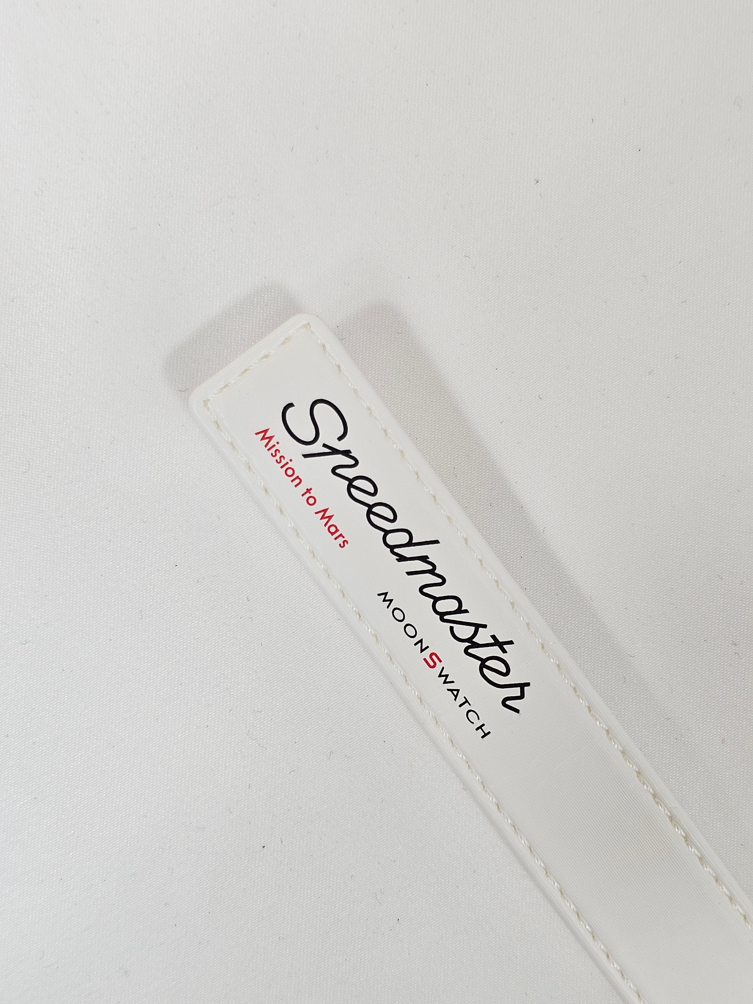 Pay homage to Mars with this vibrant tribute, where fiery red hues beautifully contrast against a bright white dial and VELCRO strap. The chronograph seconds hand, in a striking red, complements playful spacecraft-shaped hands on the hours and minutes subdials. Each dial proudly showcases OMEGA X SWATCH branding, the iconic Speedmaster logo, and the new MoonSwatch emblem.