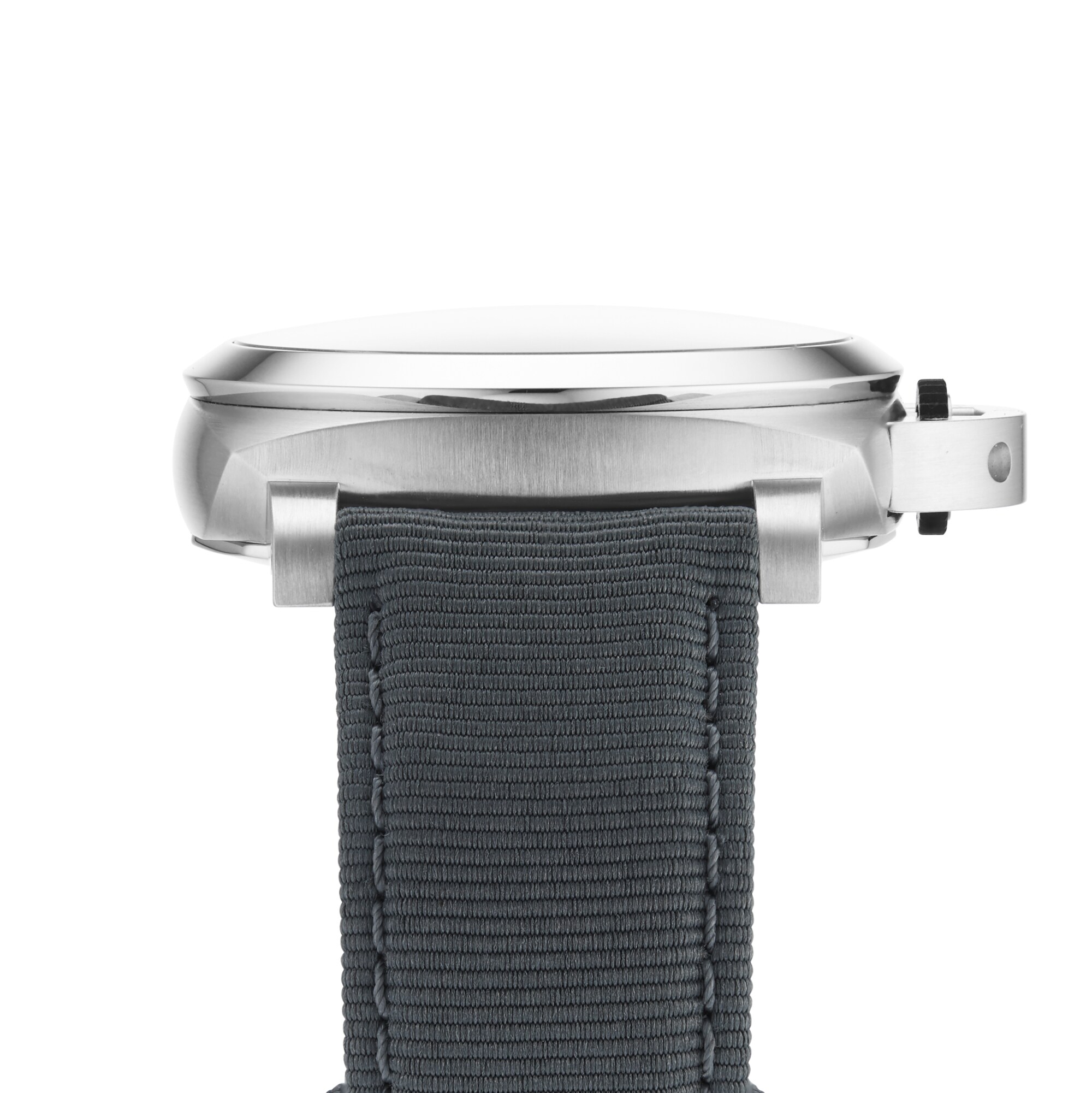 Designed to increase sustainability and circular manufacturing in the world of watchmaking, this attention-grabbing timepiece is crafted from eSteel – a new alloy incorporating recycled materials. A rubberised crown and a recycled PET strap introduce further recycled elements.