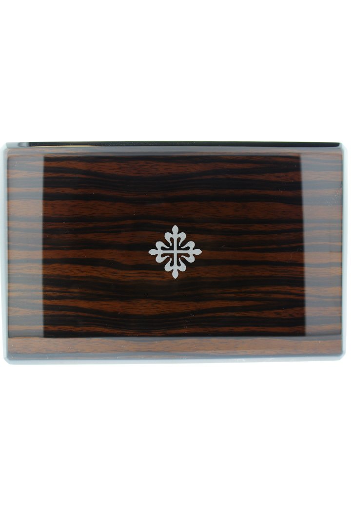 18kt rose gold case with a brown leather strap. Fixed 18kt rose gold bezel. Silver dial with gold-toned hands and index hour markers. Minute markers around the outer rim. Dial Type: Analog. Small seconds sub-dial above the 6 o'clock position. Mechanical movement. Scratch resistant sapphire crystal. Pull / push crown. Transparent case back. Case diameter: 38 mm. Round case shape. Tang clasp. Water resistant at 30 meters / 100 feet. Functions: hour, minute, second. Luxury watch style. Watch label: Swiss Made. Patek Philippe Calatrava Silver Dial 18k Rose Gold Brown Leather Mens Watch 5123R-001.