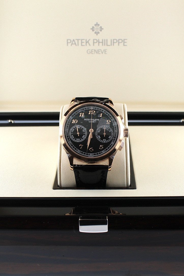 39.4 mm 18K rosegold case, sapphire-crystal back, ebony-black opaline dial with gold applied Breguet numerals, caliber CH 29-535 PS manually wound movement with central chronograph hand and 30-minute elapsed time counter, seconds subdial, approximately 65 hours of power reserve, shiny black alligator strap with square scales, fold-over buckle. Water resistant to 30 m.