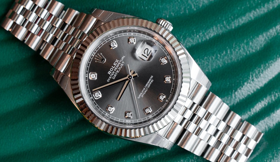 This is a brand-new Rolex Datejust ref. 126334. It features a 41mm diamond-set slate dial. Featuring a Jubilee Bracelet, this watch looks sophisticated and graceful.