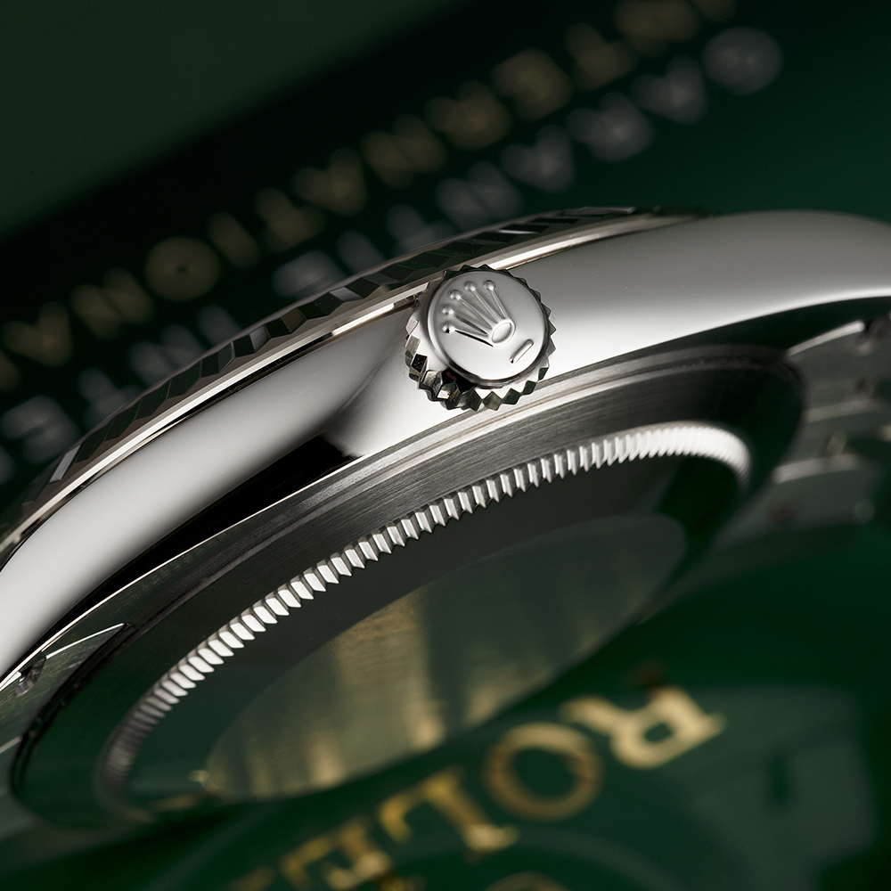 With this model being one of the most sought-after Datejust in the Rolex collection, it's no wonder this is the first one we've ever had on the superb Jubilee bracelet. This 41mm stainless steel case houses the slate grey 'Wimbledon' dial with distinctive green Roman numerals, Chromalight hands & baton at 9. Framed by the 18ct white gold fluted bezel, powered by the new generation calibre 3235 automatic movement with 70hr power reserve. Waterproof to 100m.