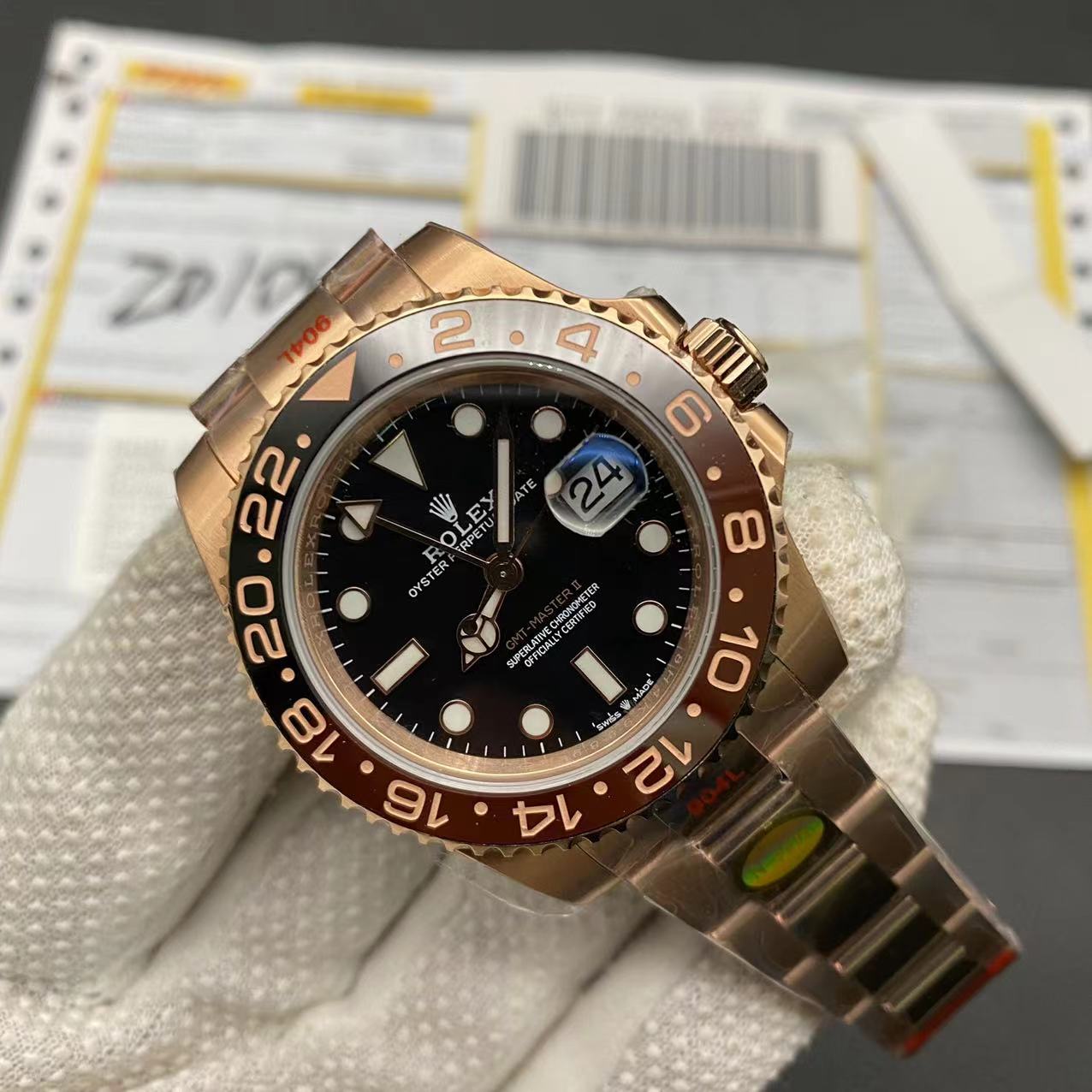 • Super Clone Rolex GMT Master 2 Rose Gold Black Dial