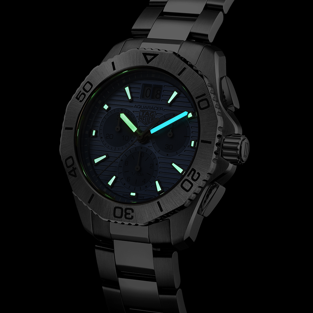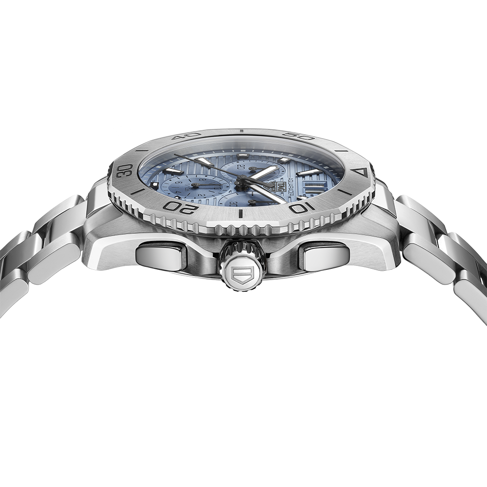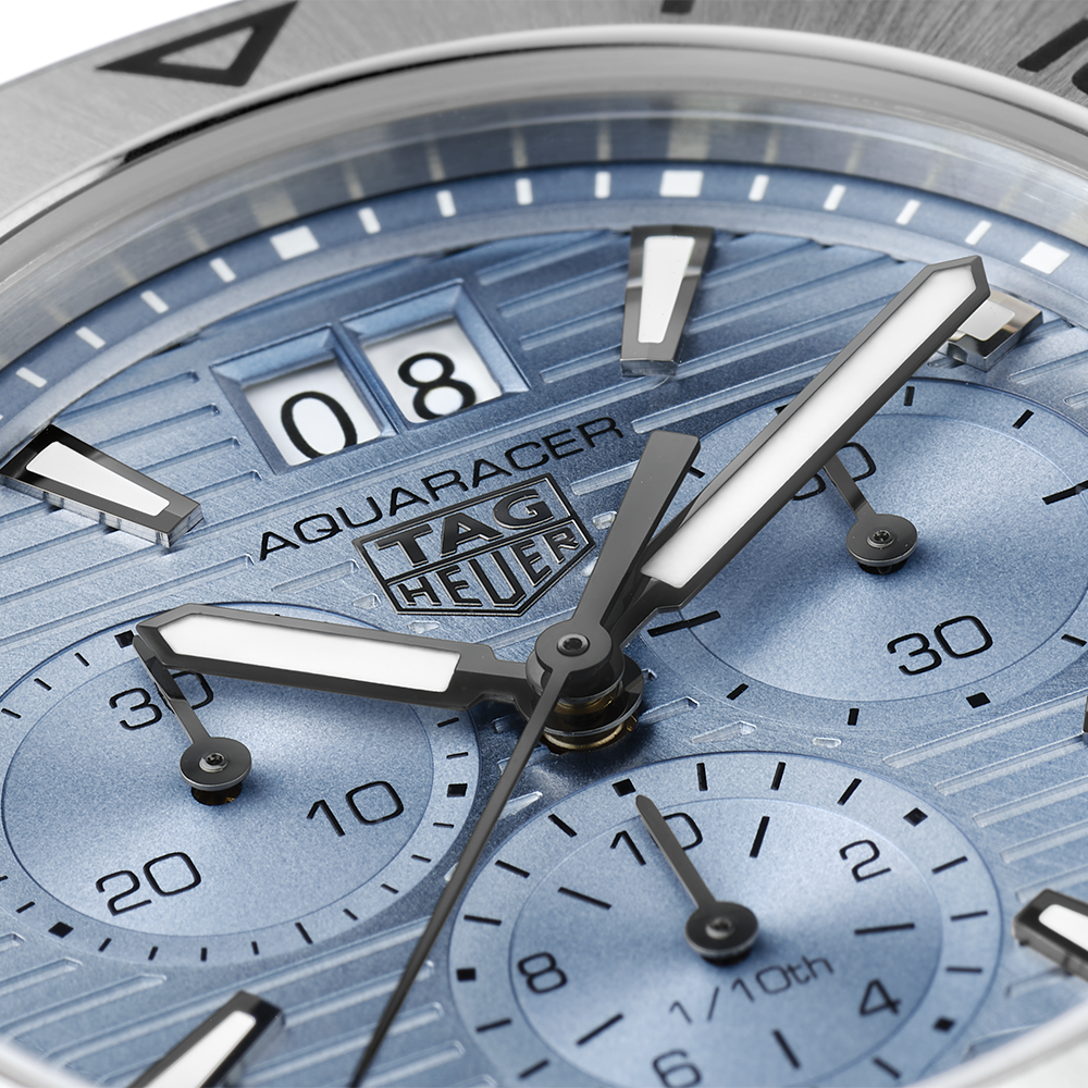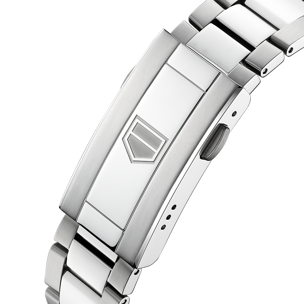 Subtly evoking the sky or ice, the light blue-themed dial of this tapered steel TAG Heuer Aquaracer perfectly sets the scene. Built to endure extremes, this reliable watch has the strength to take on the great outdoors, whatever the conditions may be.