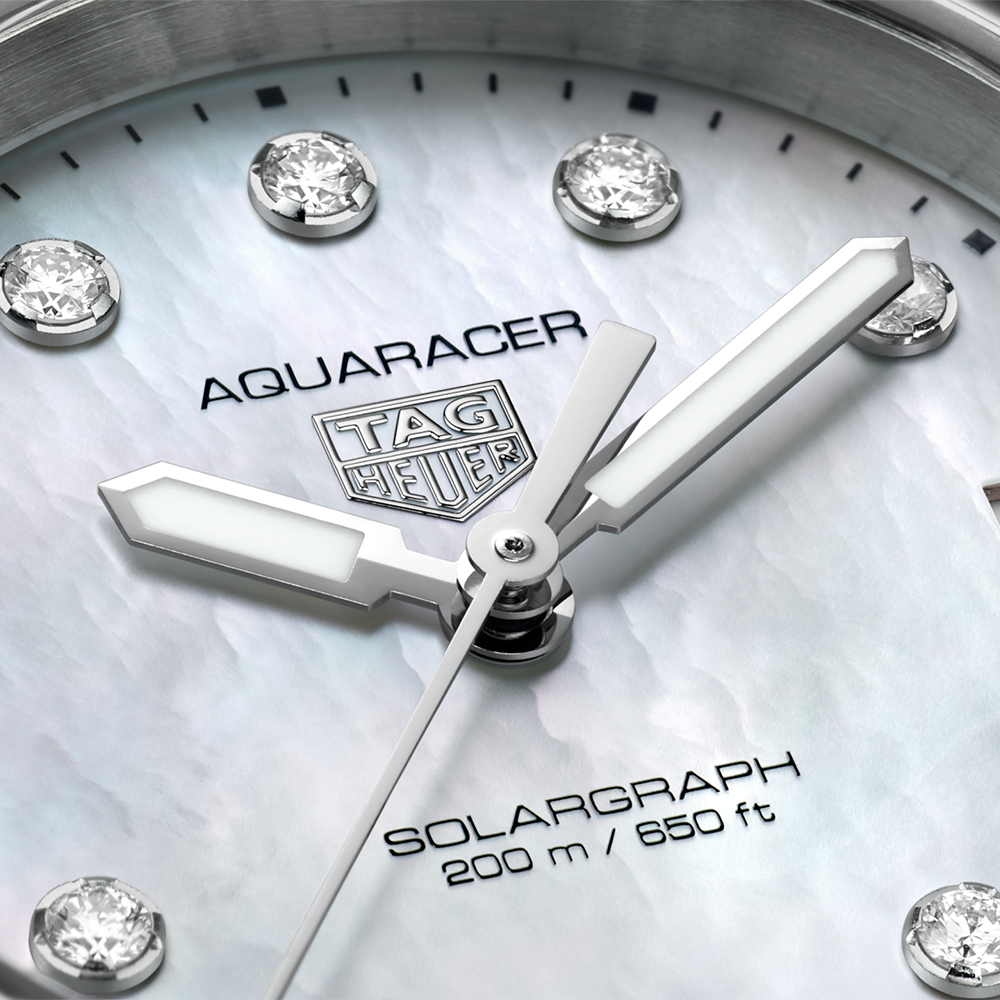 Elevate your elegance with this TAG Heuer Aquaracer, a fusion of precious materials and robust functionality. Designed for the modern adventure-seeker, this 34 mm watch is your luxurious companion for every journey and equipped with our Solargraph movement.