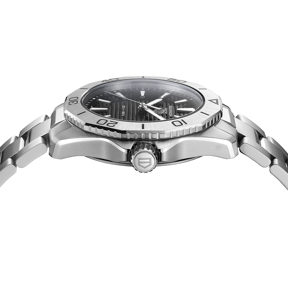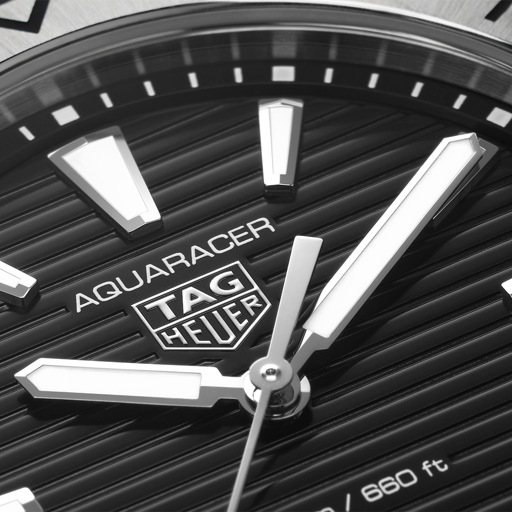 The TAG Heuer Aquaracer is a reliable tool built to endure any condition. This versatile watch, with steel case and bracelet, is ready to take up any challenge, offering optimised ergonomics and finishing for extreme comfort and elegance. With a refined 40mm steel case and matching steel bezel offering absolute comfort in any conditions, this TAG Heuer Aquaracer is built to overcome. The black sunray brushed dial features rhodium-plated hands and indexes filled with white Super-Luminova for all-day legibility.
