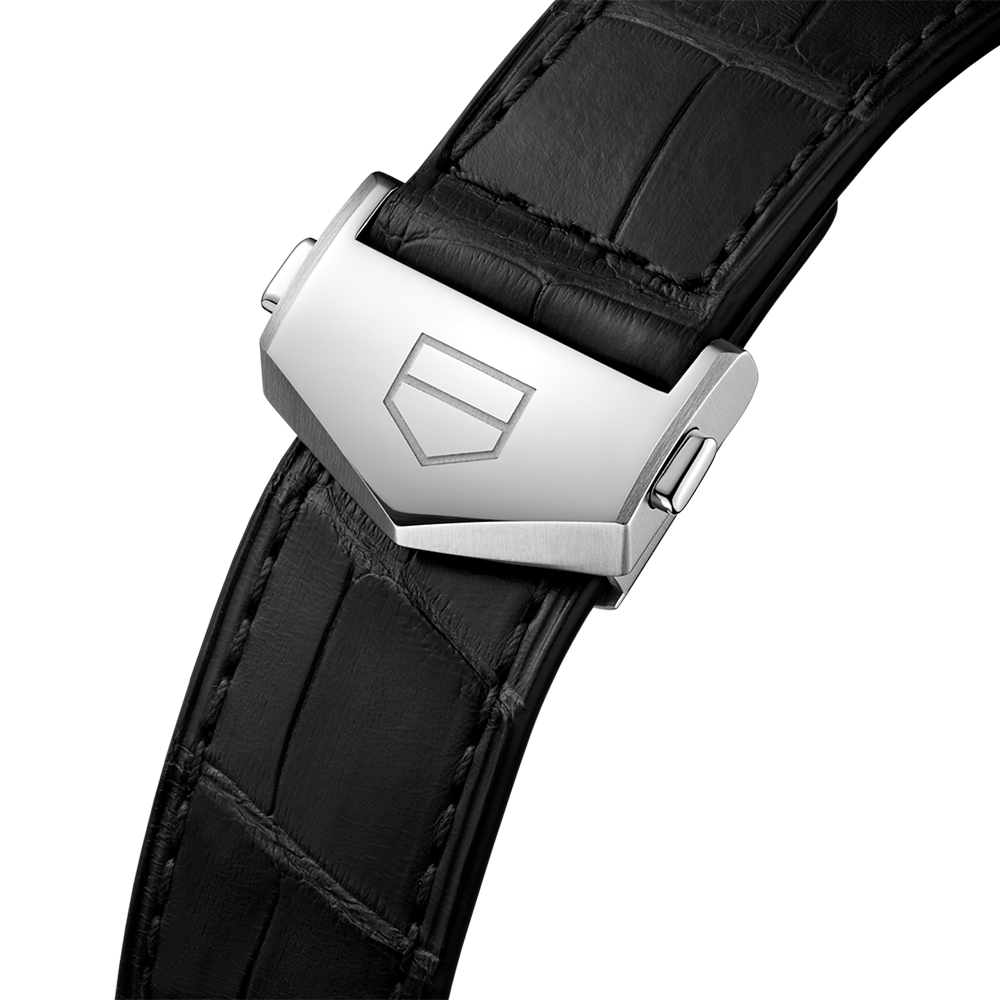 Emblematic, the TAG Heuer Carrera is a proudly elegant three-hand automatic watch powered by the Calibre 5 movement. The black azurage dial with matching 18k 5N rose gold plated hands and hour markers makes a distinctive statement. Highly ergonomic and ideal for the active city dweller, the 41mm steel case is water-resistant to 100 metres. A sapphire caseback reveals the Calibre 5 movement.