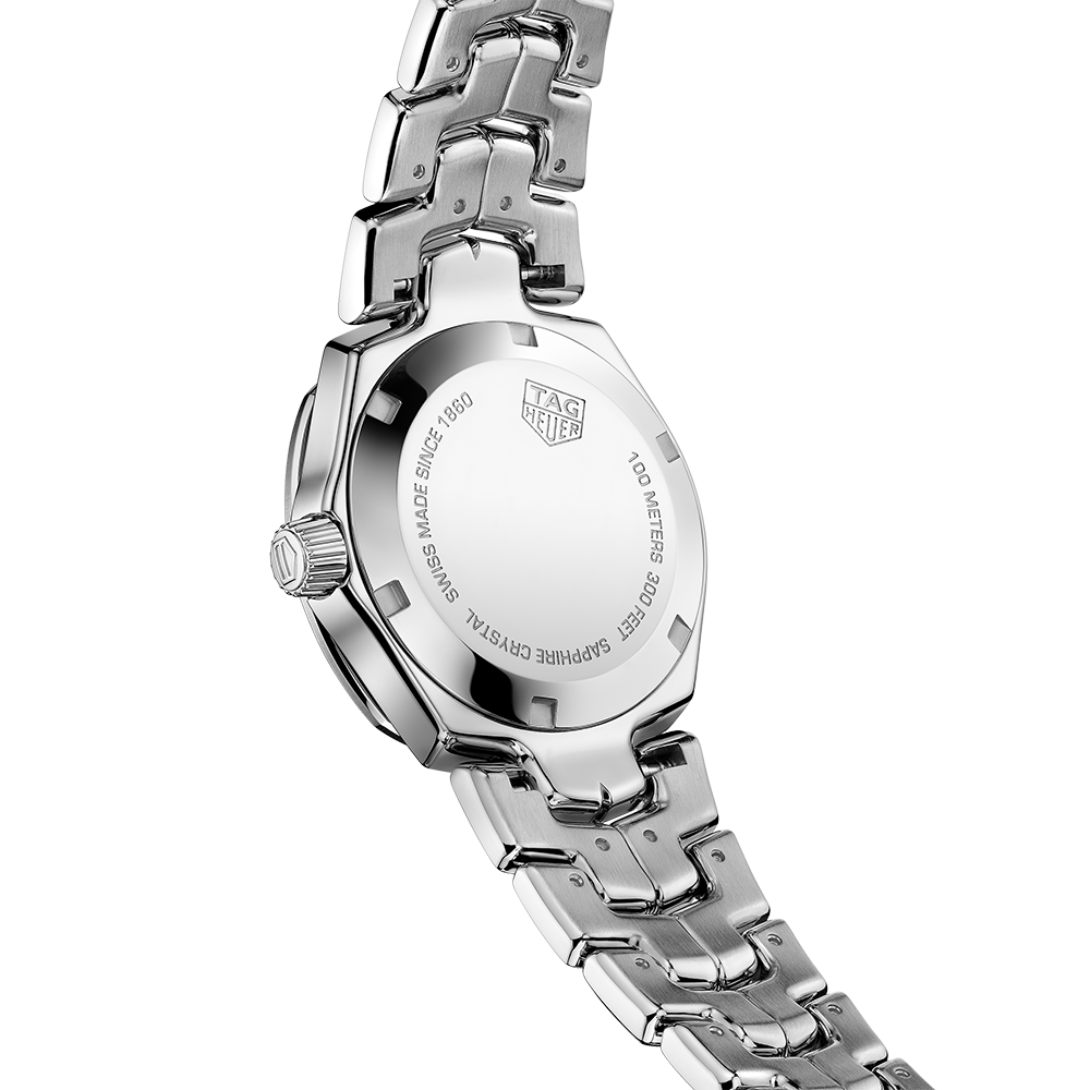 The Link Lady, a 4th generation design of this classic family from TAG Heuer, is fitted with the most comfortable bracelet in an even sharper and more elegant finish. With a cushion shaped case and mother of pearl dial encased in fine-brushed and polished steel. This striking watch is a continuing symbol of fusion between comfort and style.